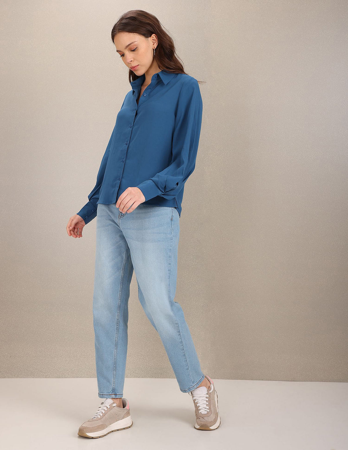 - Long sleeves with barrel cuffs