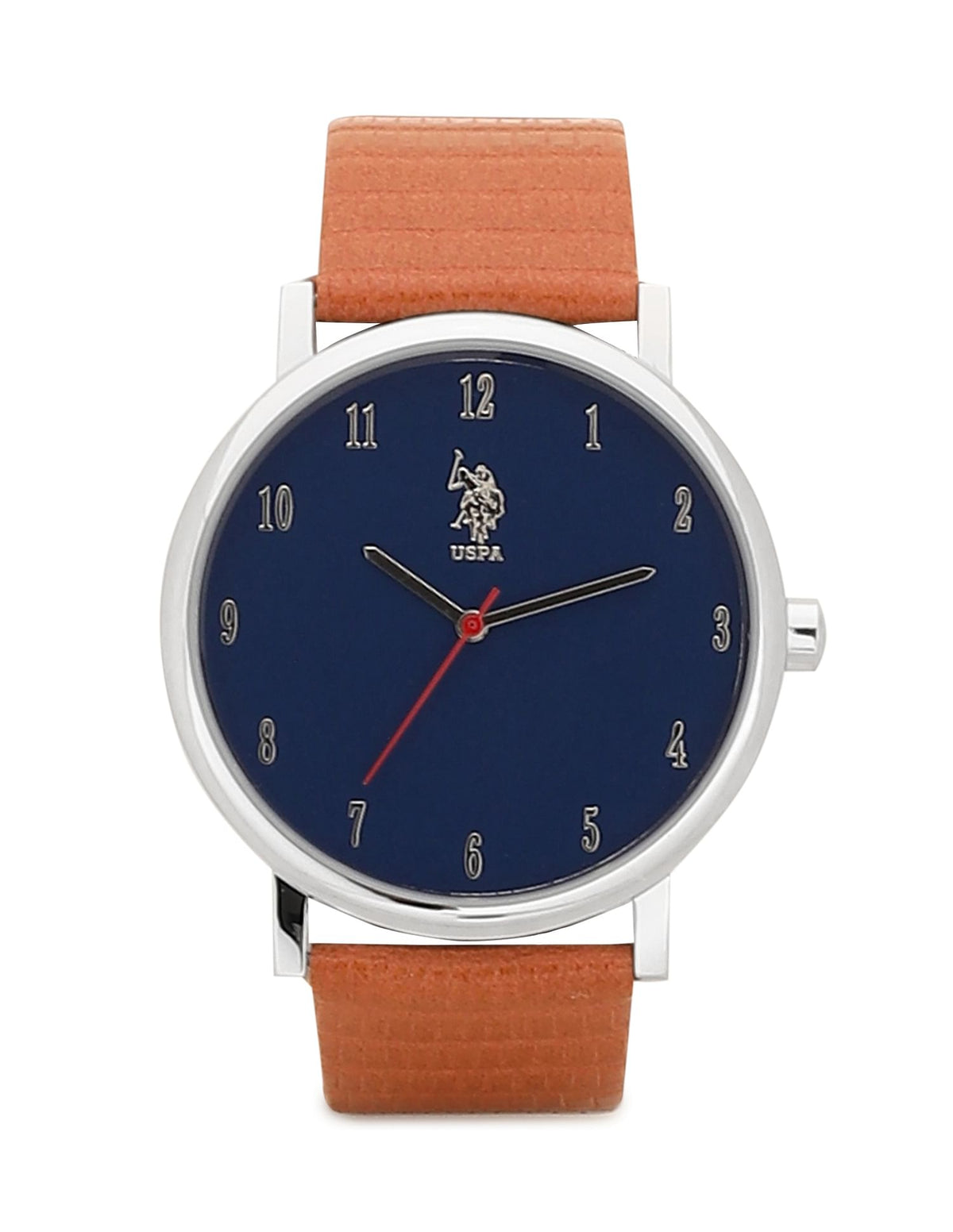 - Tan textured strap with a tang clasp