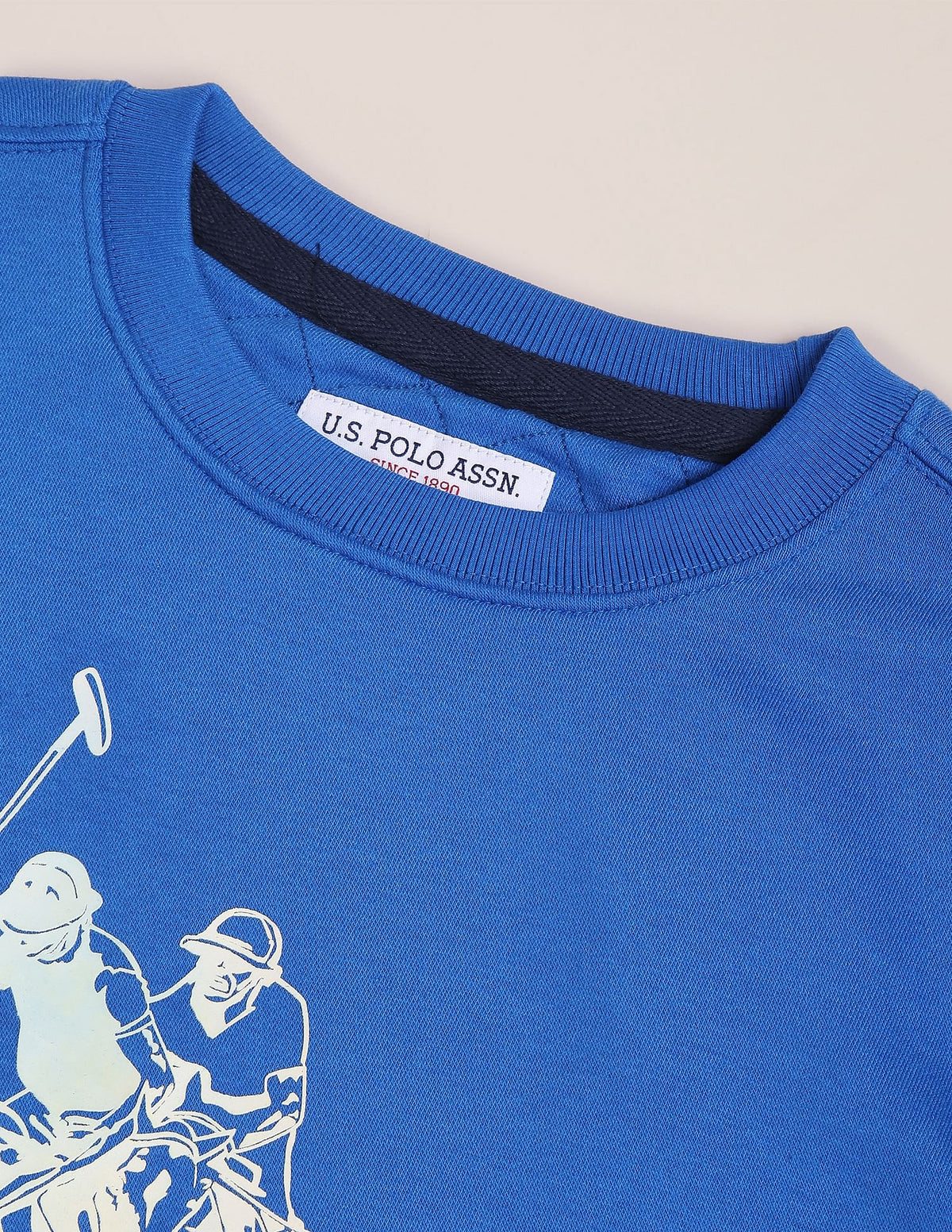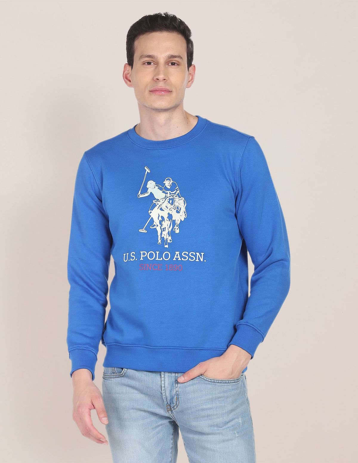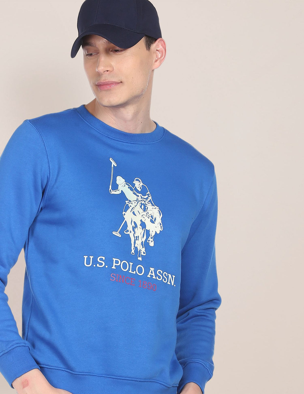 Men Blue Crew Neck Logo Print Sweatshirt