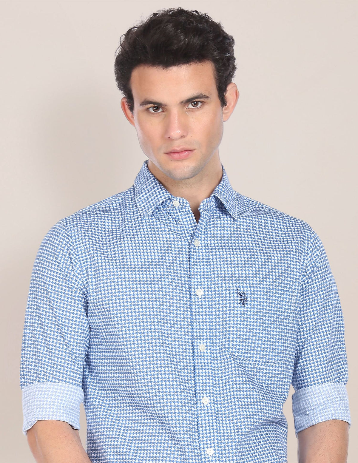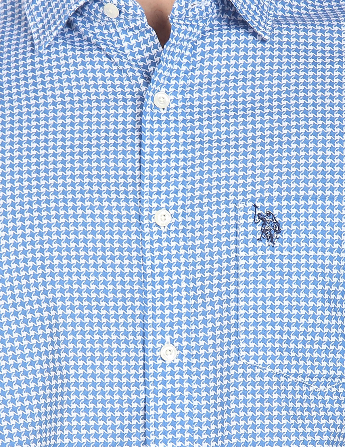 Men Blue Spread Collar Printed Casual Shirt