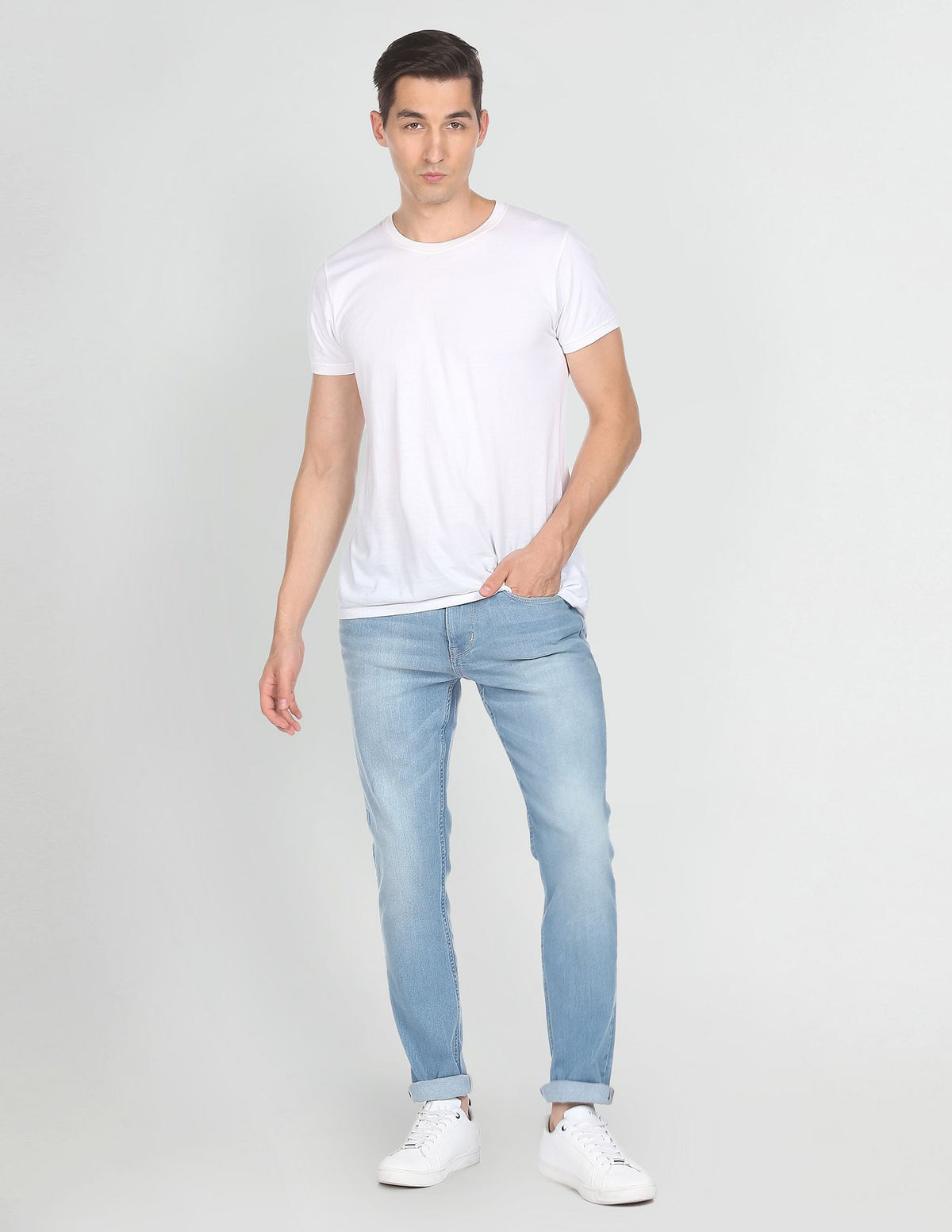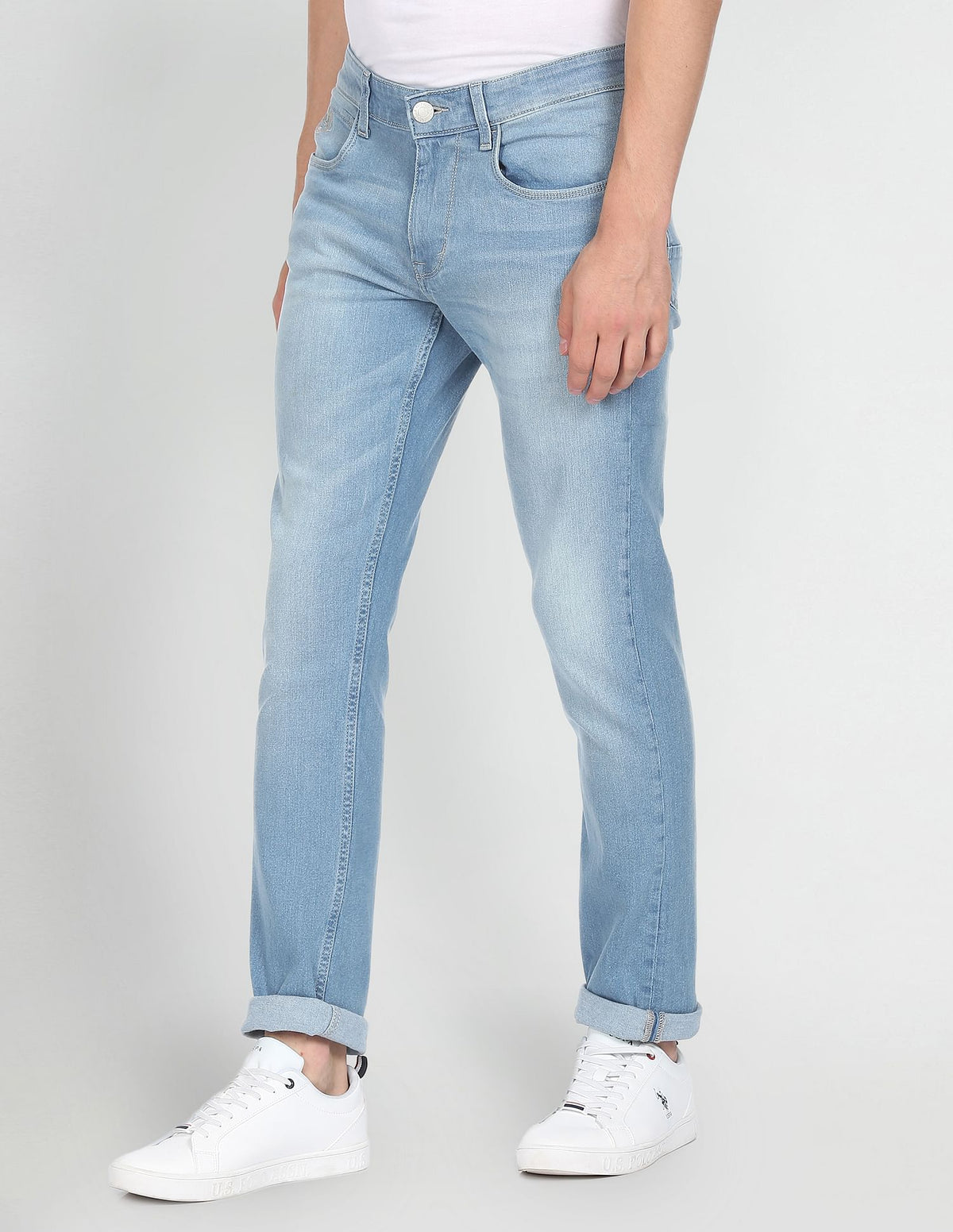 Men Blue Stone Wash Brandon Slim Tapered Fit Jeans