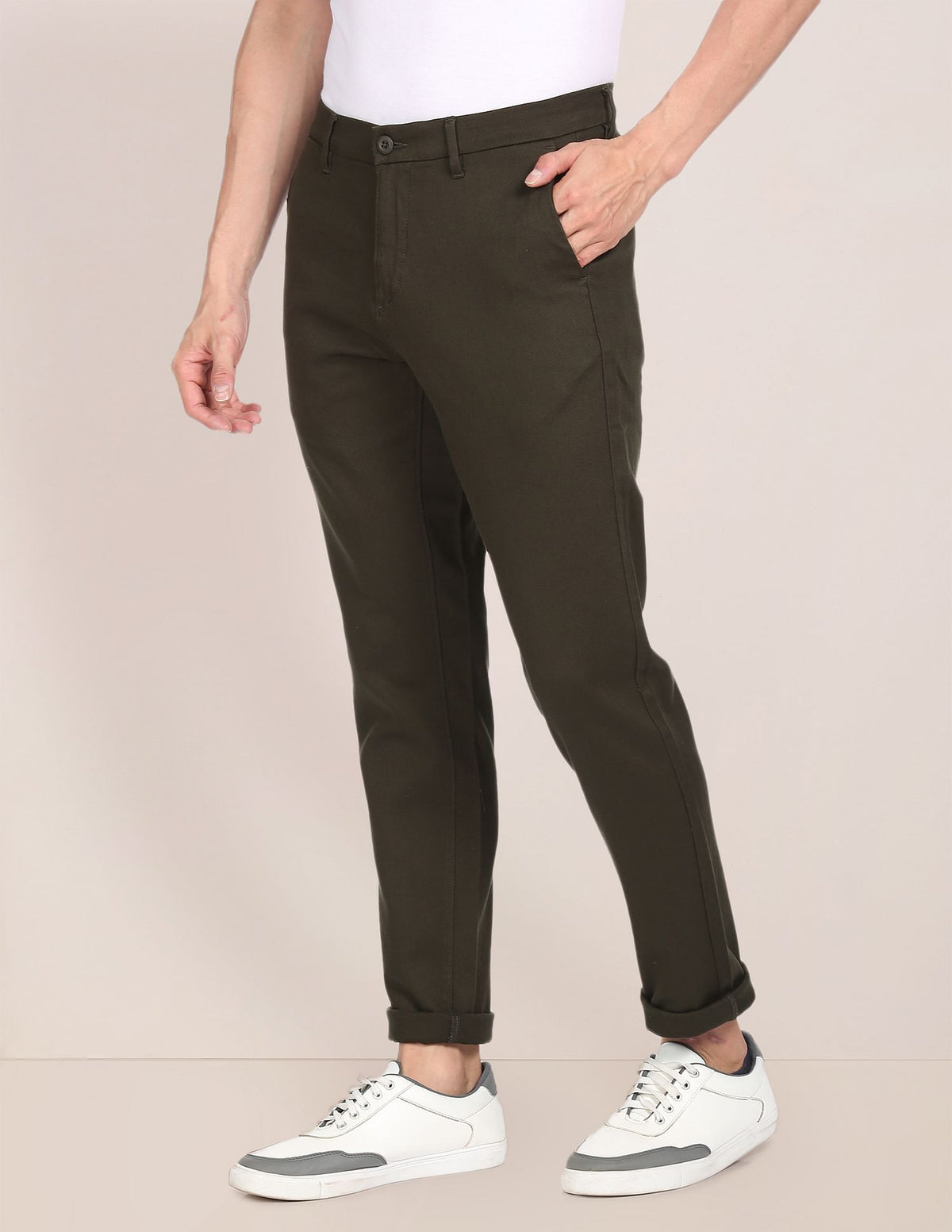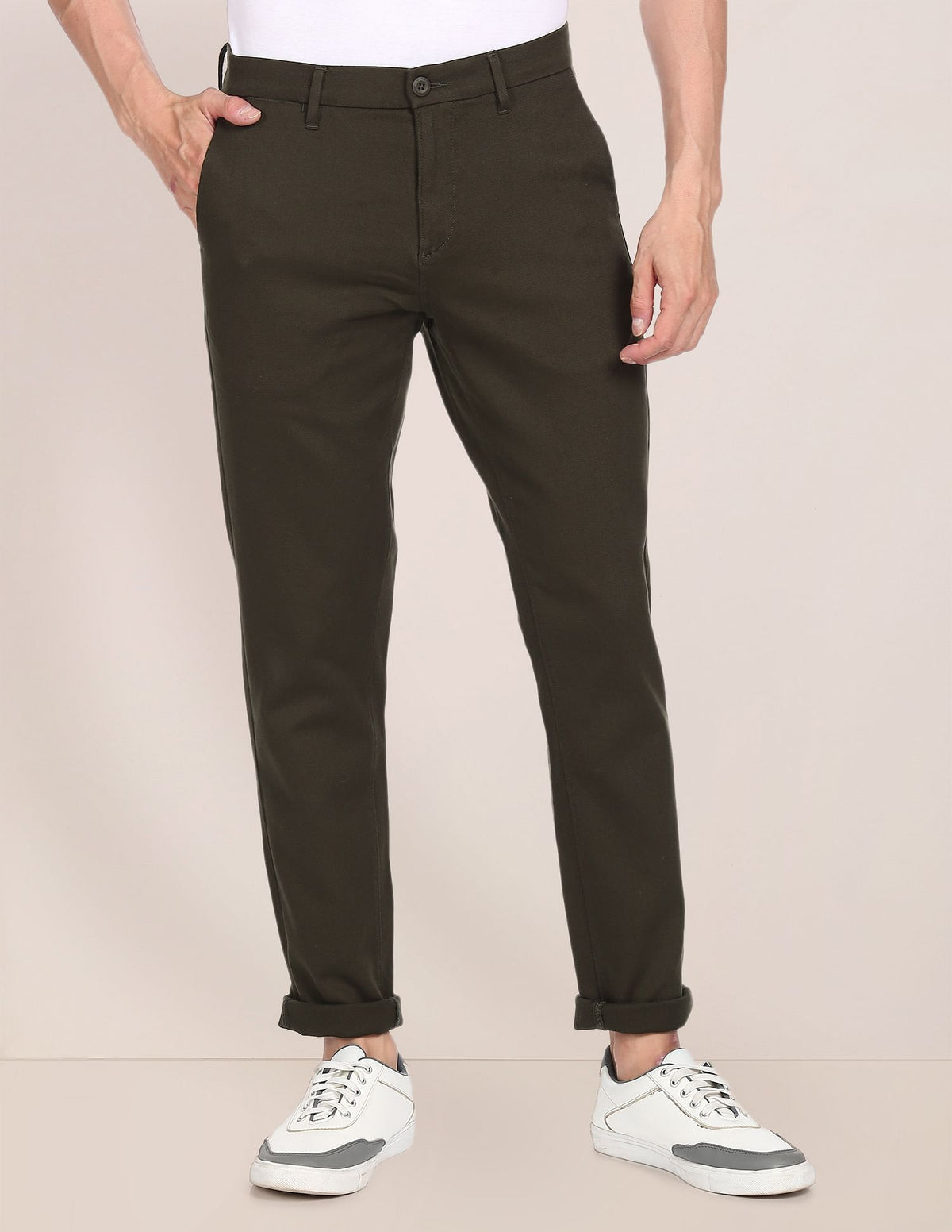Men Dark Green Austin Trim Fit Flat Front Casual Trousers