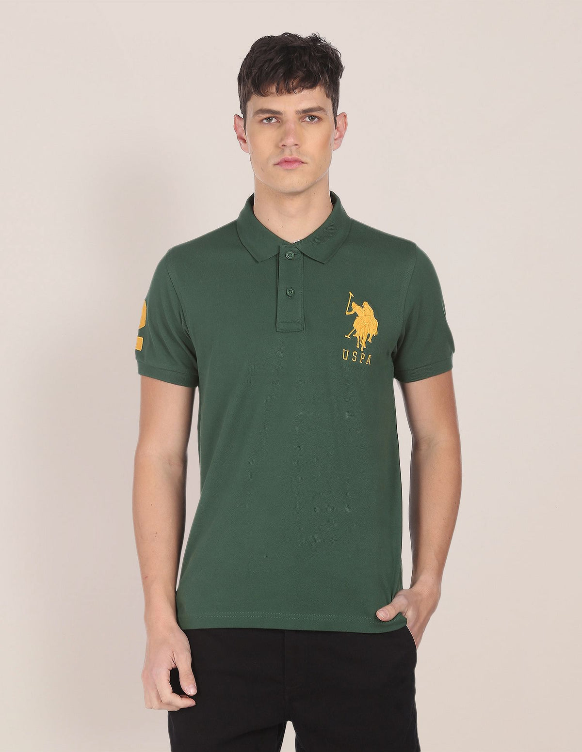 Men Dark Green Cotton Solid Polo Shirt