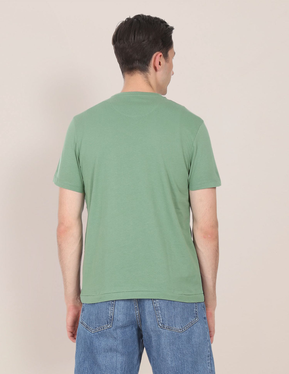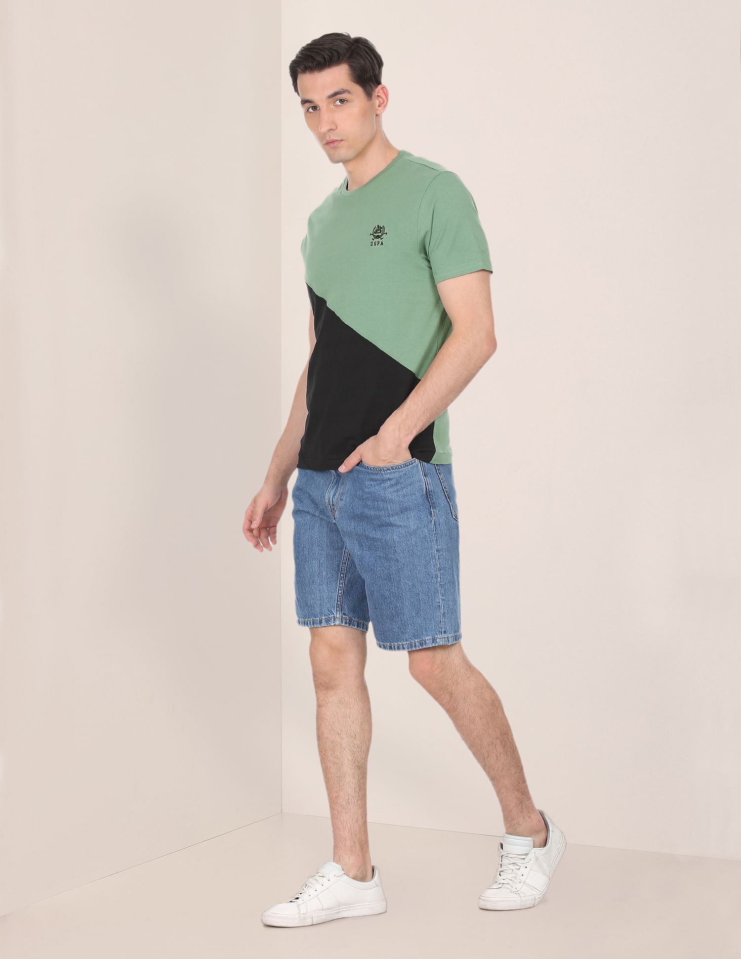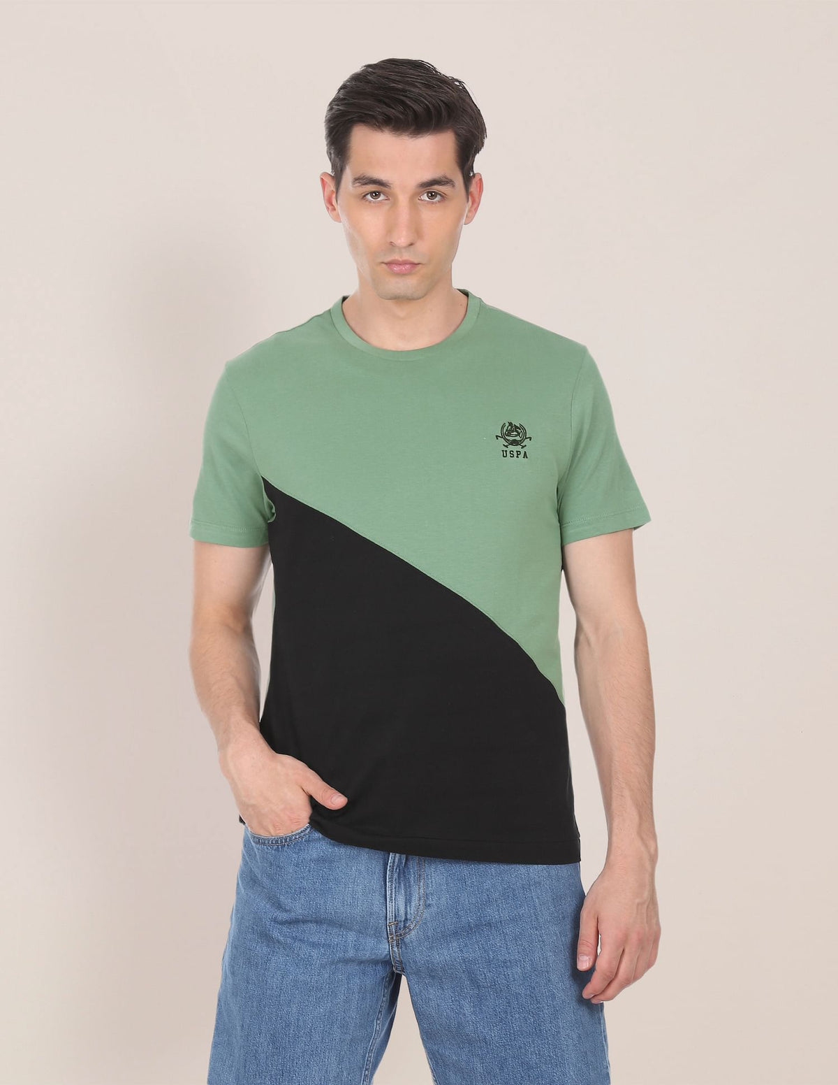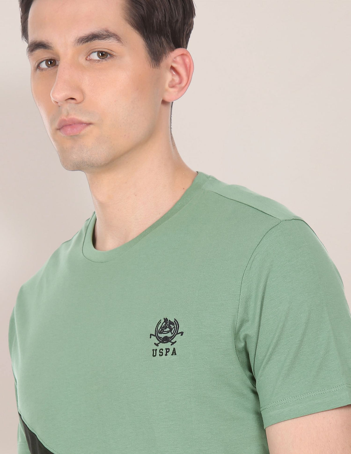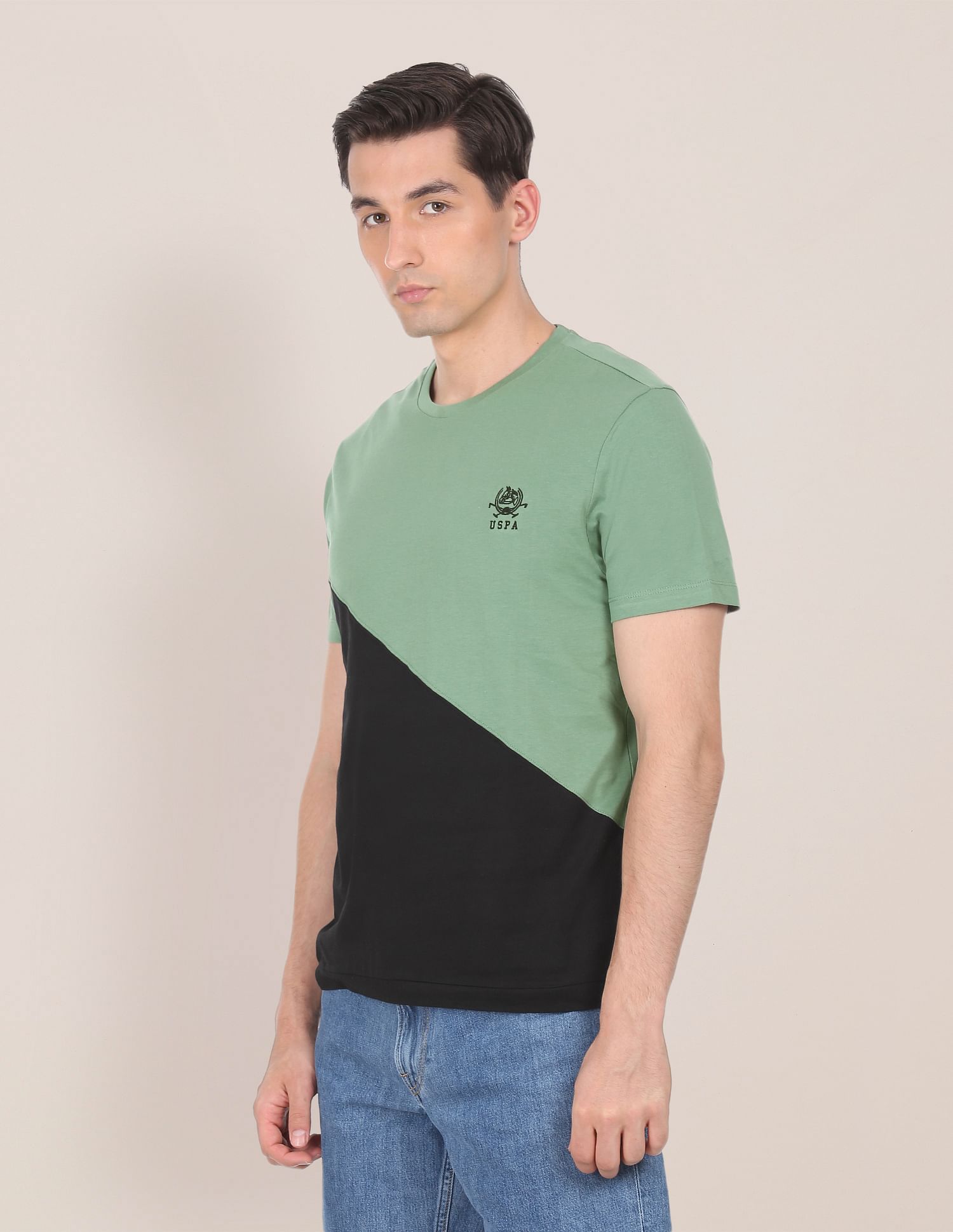 Men Green Cotton Colour Block T-Shirt