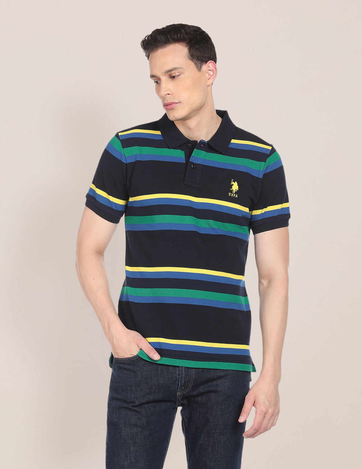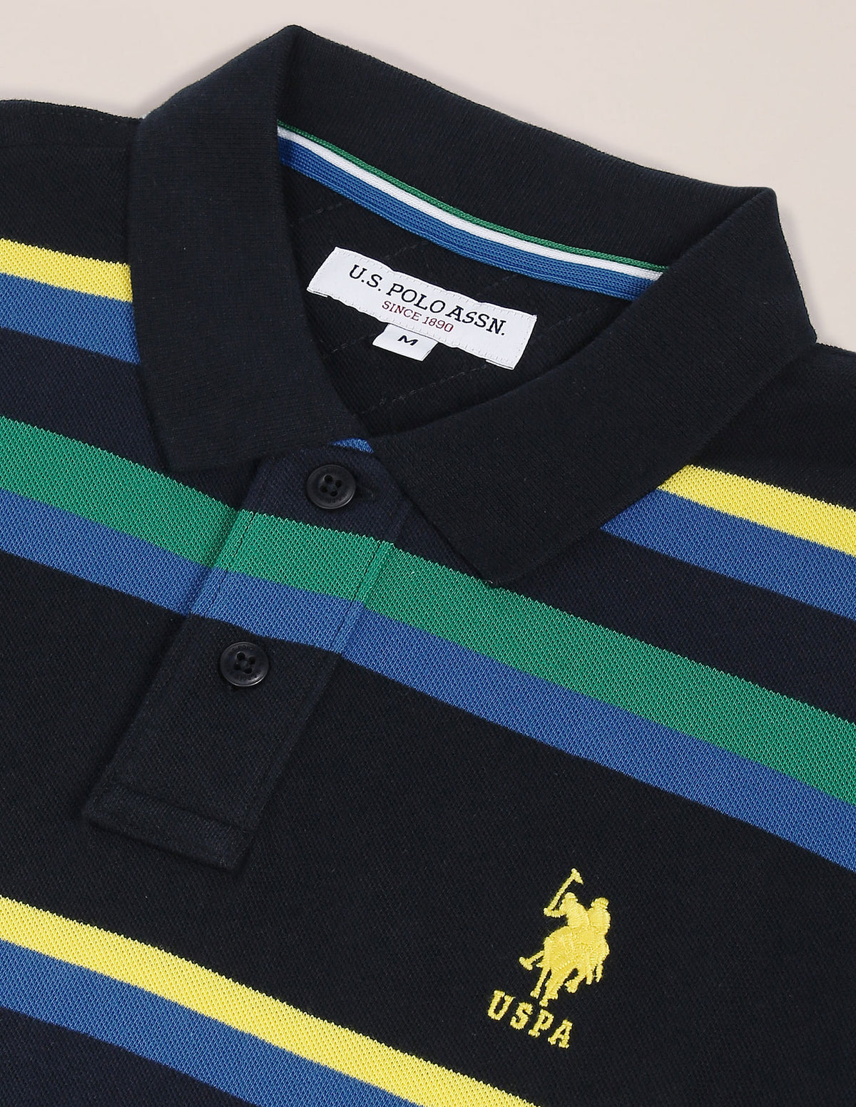 Men Navy Horizontal Stripe Cotton Polo Shirt