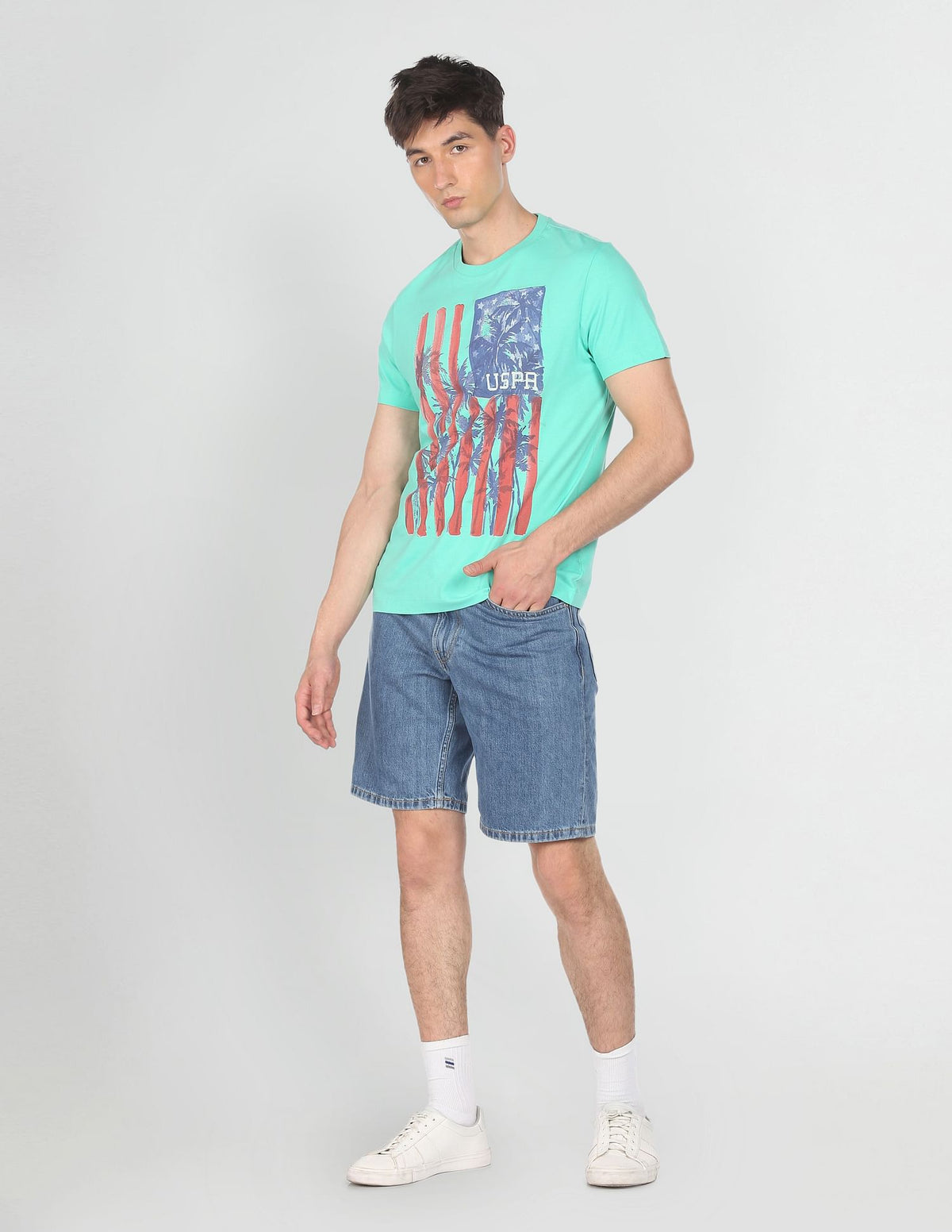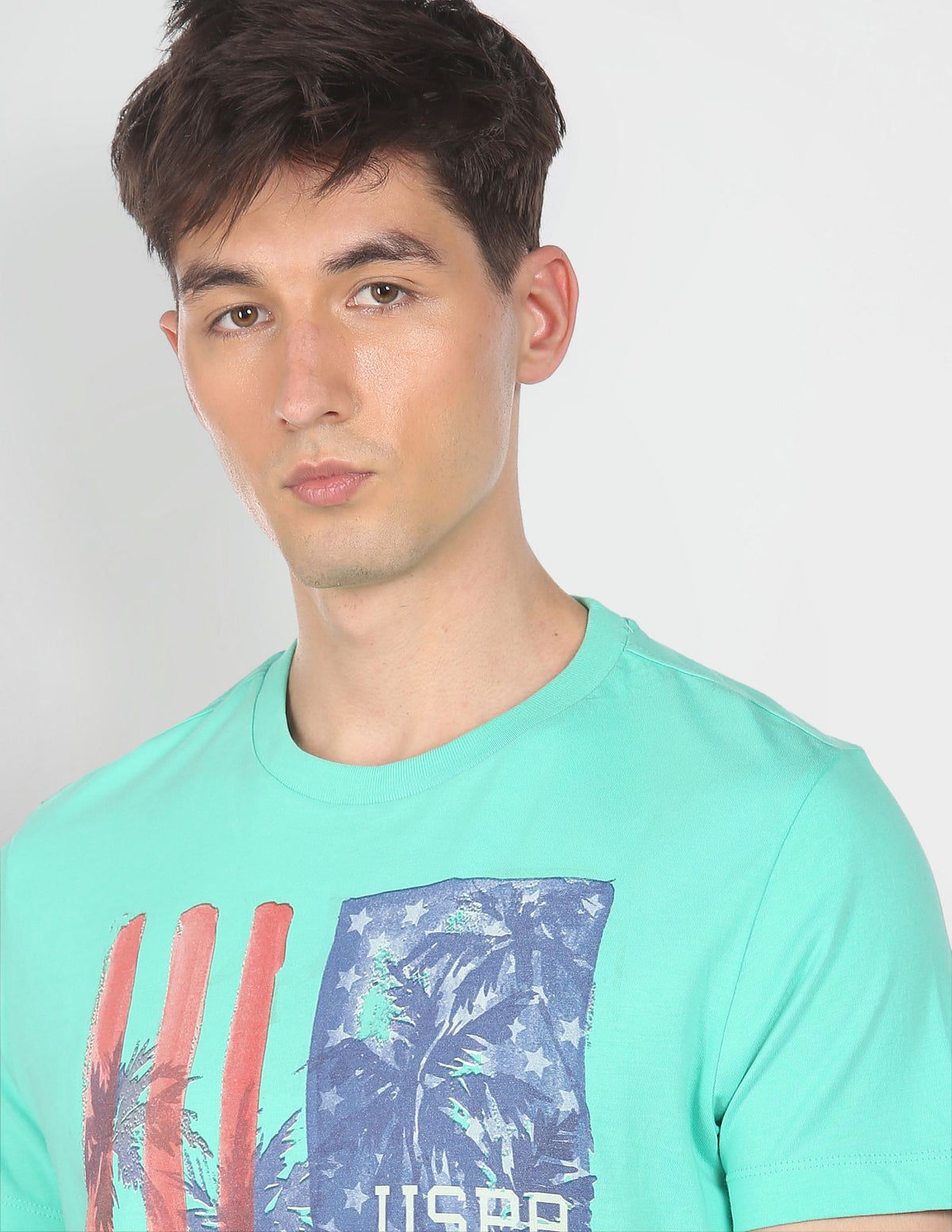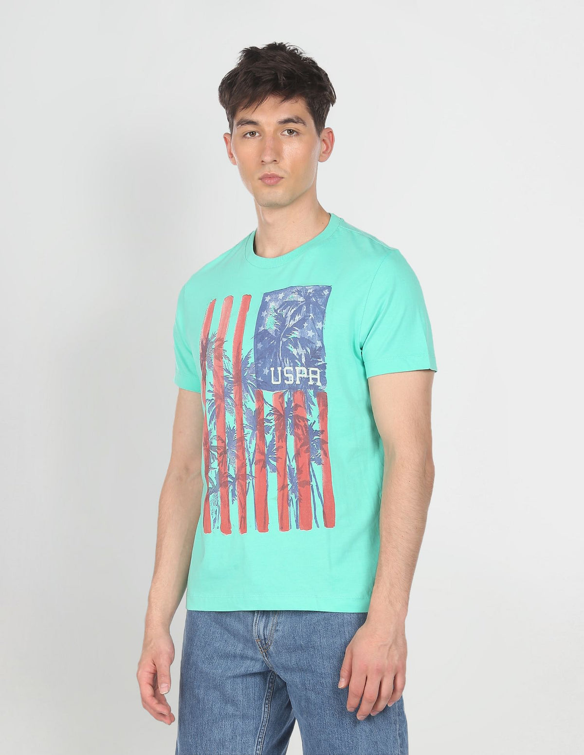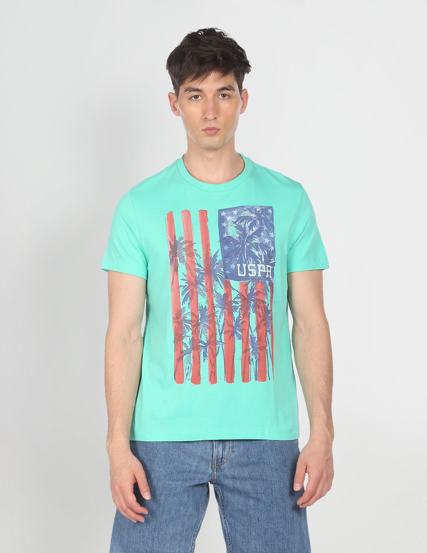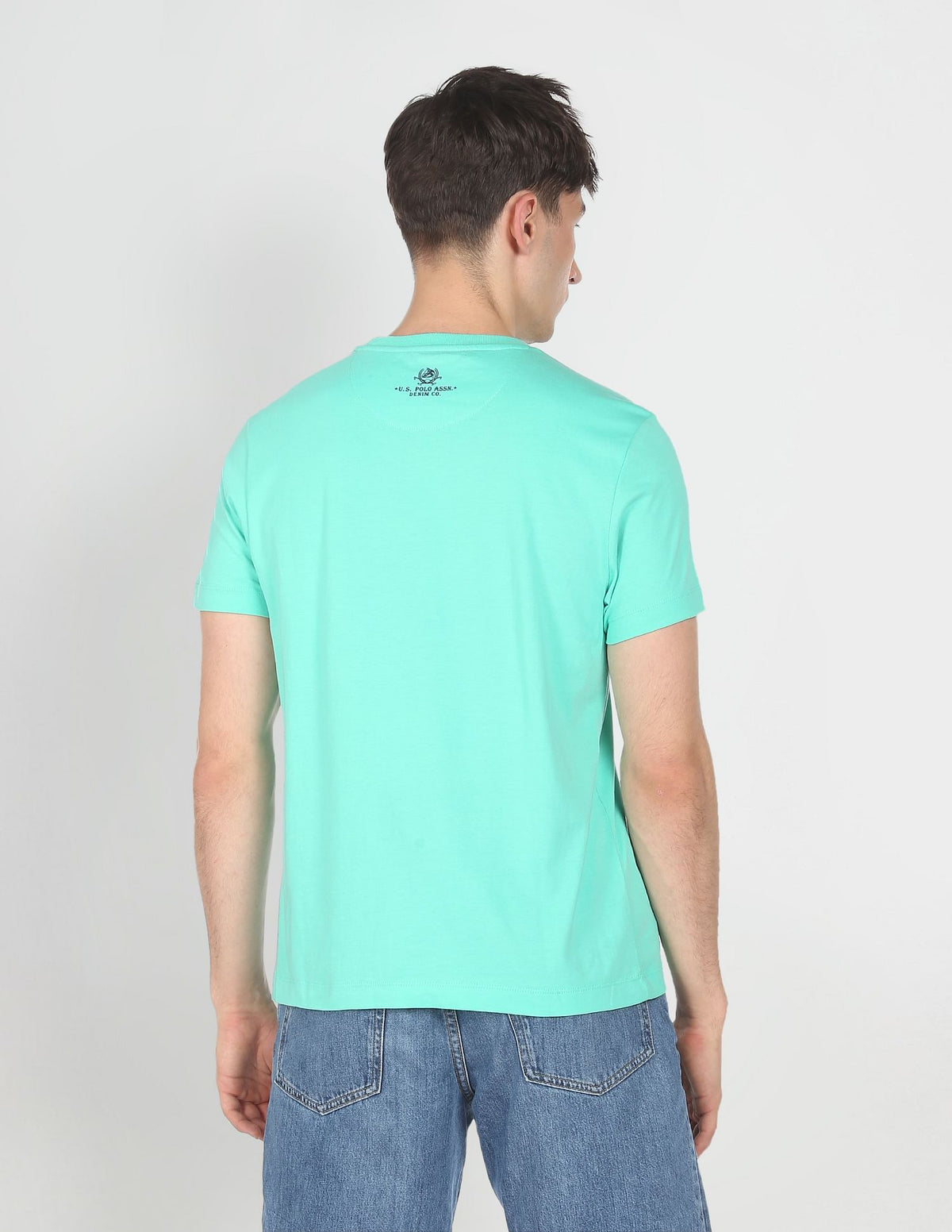 Men Sea Green Crew Neck Graphic Print T-Shirt