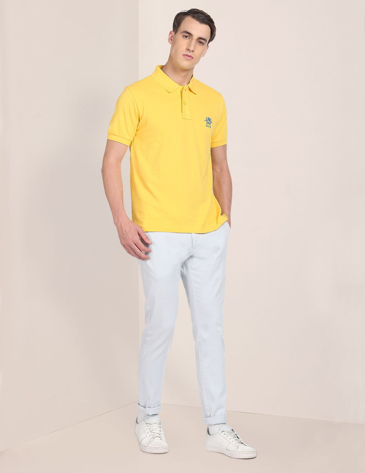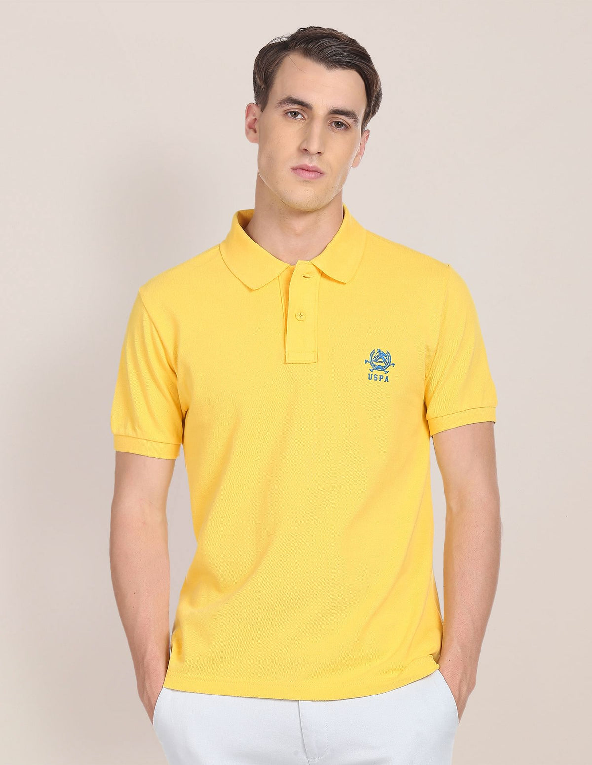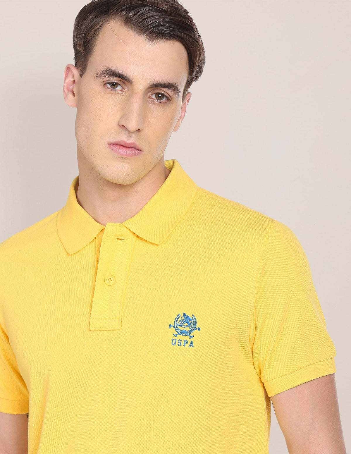 Men Yellow Solid Pique Knit Pure Cotton Polo Shirt