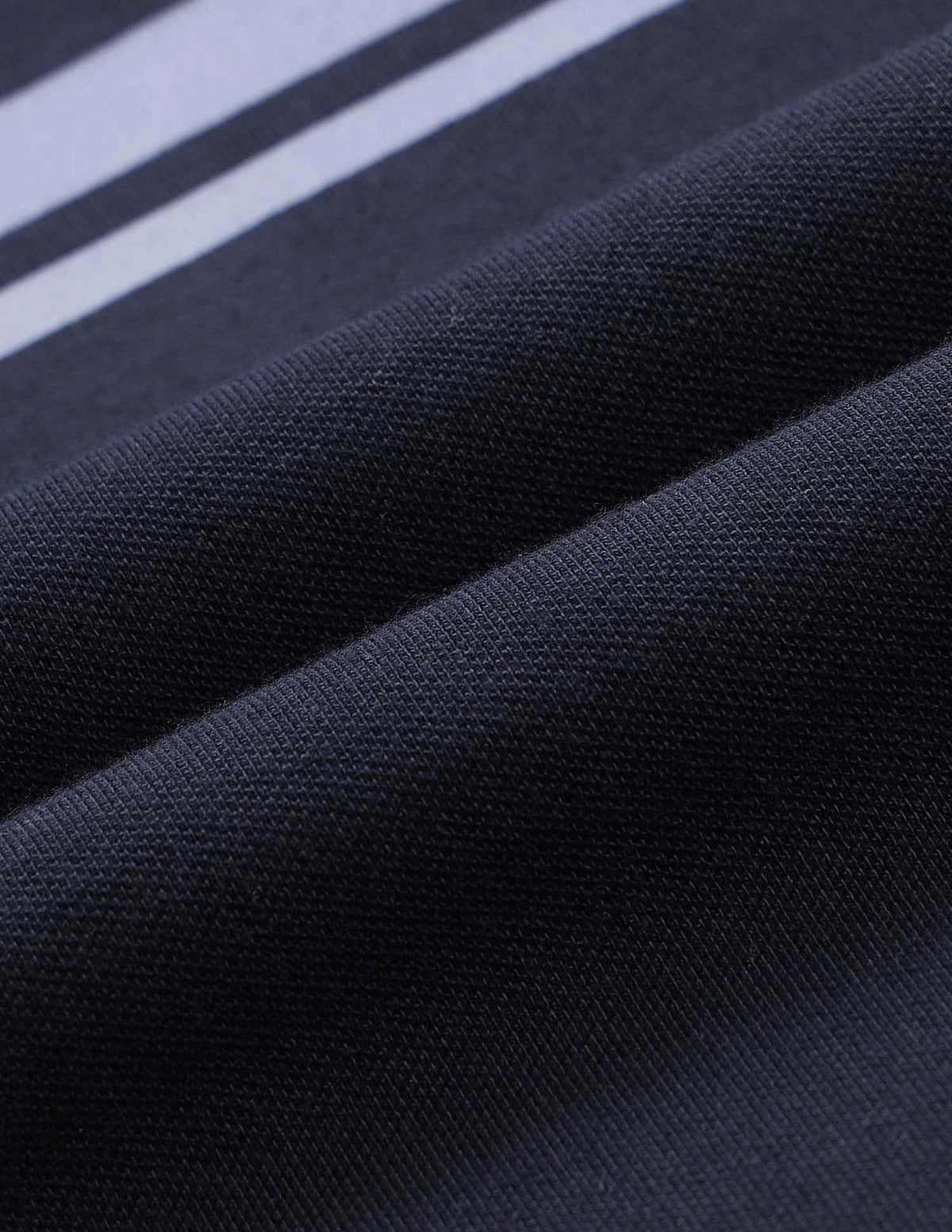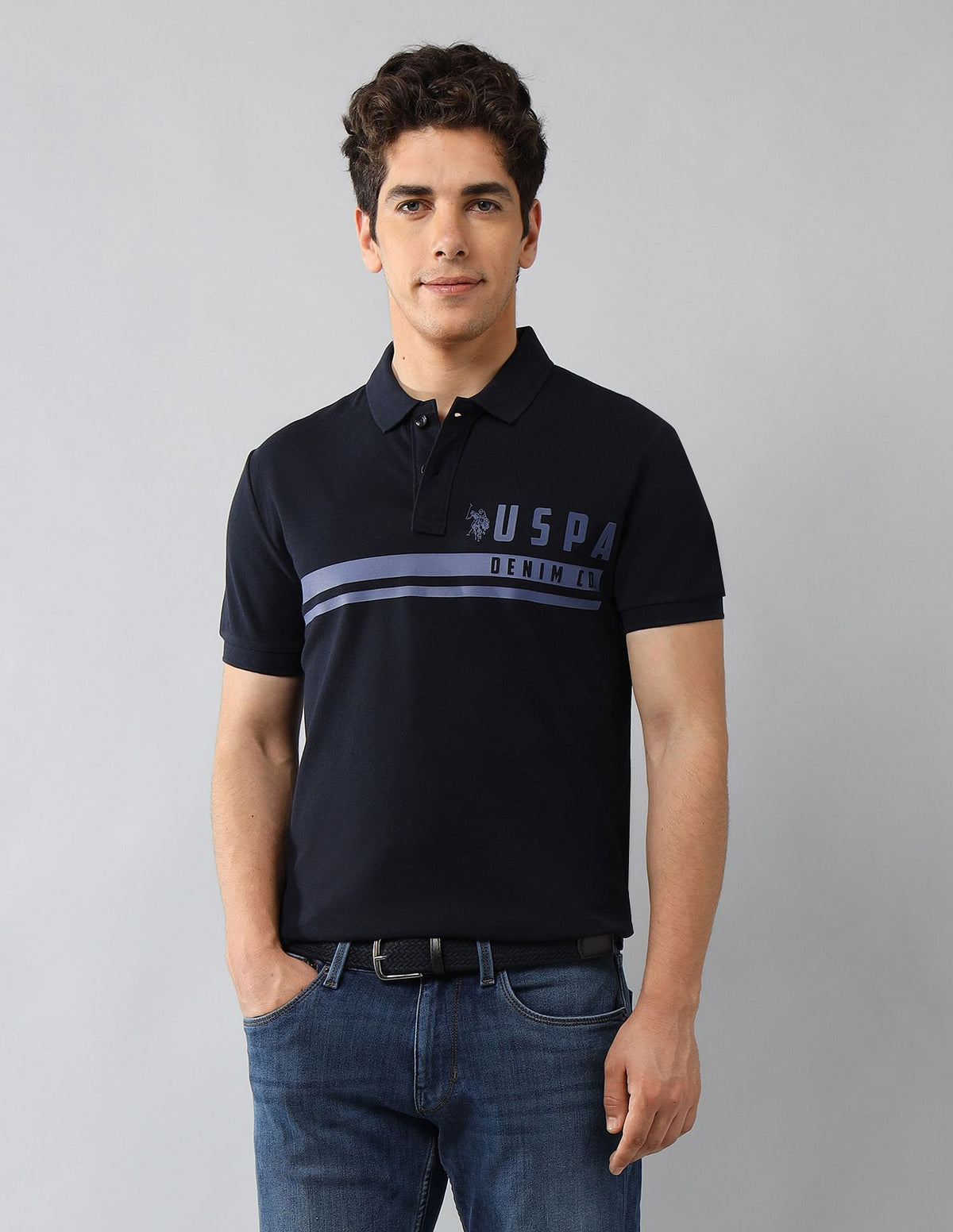 | Polo collar | Logo at chest | Short button placket | Short sleeves | Ribbed collar and sleeve hems | Uneven vented hem | Solid pattern | Pique knit | Muscle fit |