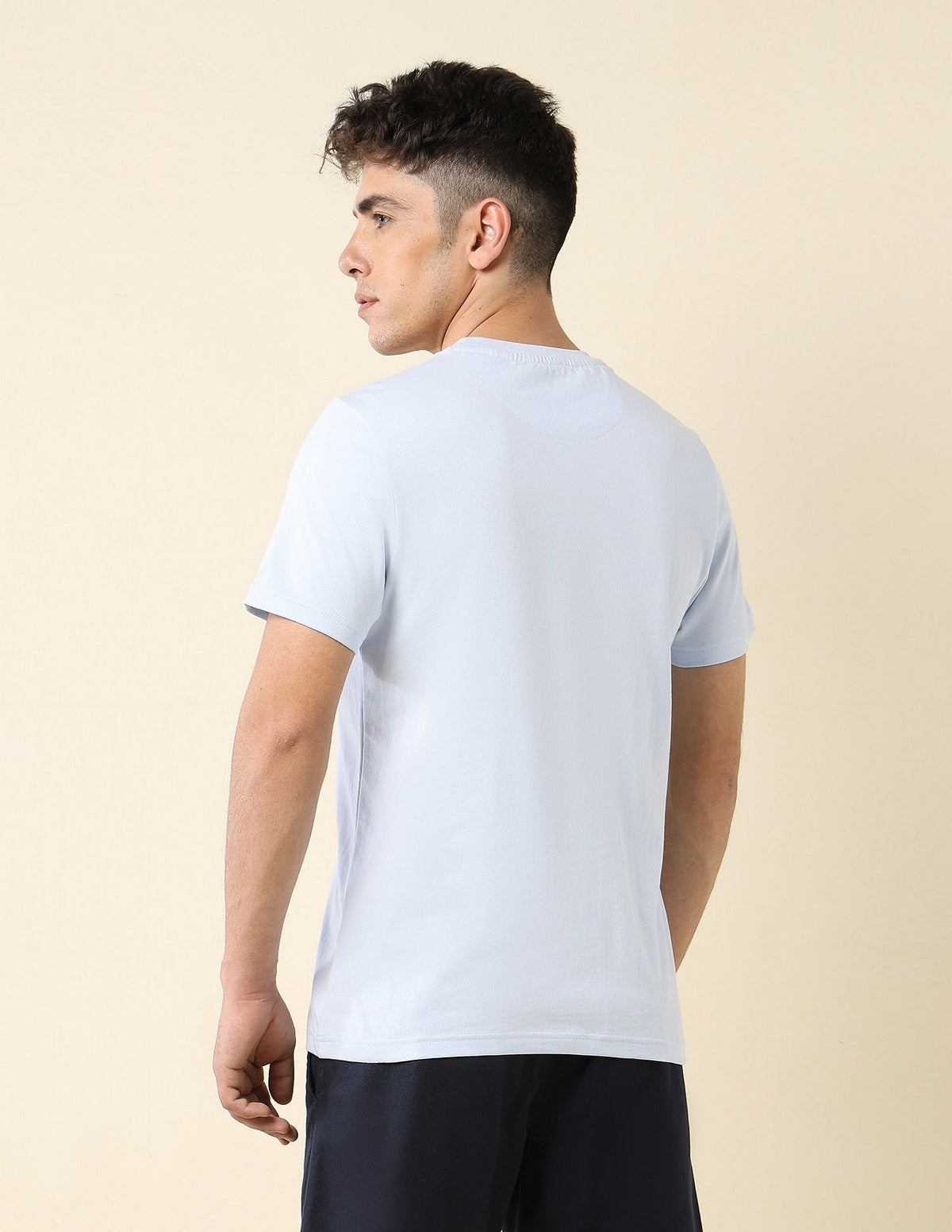 | Ribbed round neck | Short sleeves | Straight hemline | Brand printed pattern | Knitted | Slim fit |