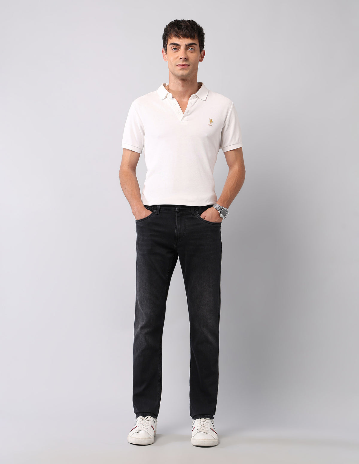 Story: These solid men's casual jeans are a wardrobe essential, offering comfort and style for your everyday looks.