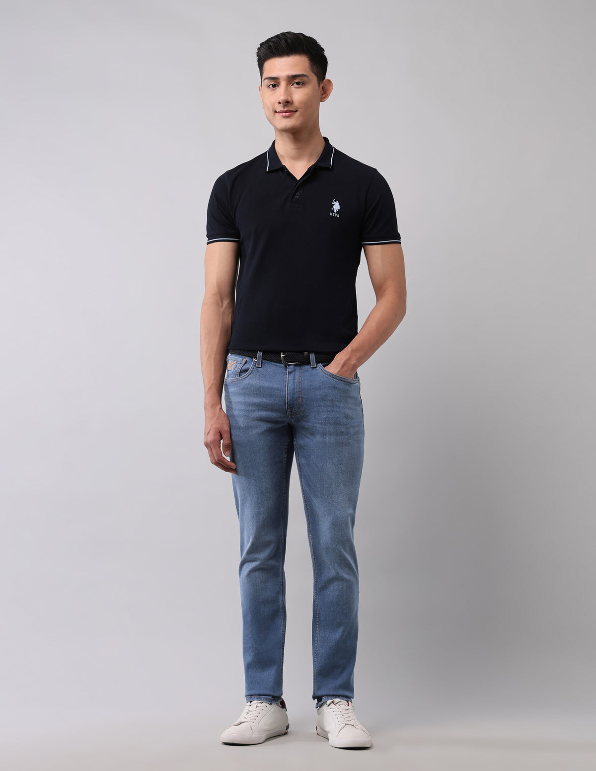 Story: Fellas, check out these solid jeans! They're your new casual staple. Designed for men, they're perfect for relaxed, everyday wear. Rock on!