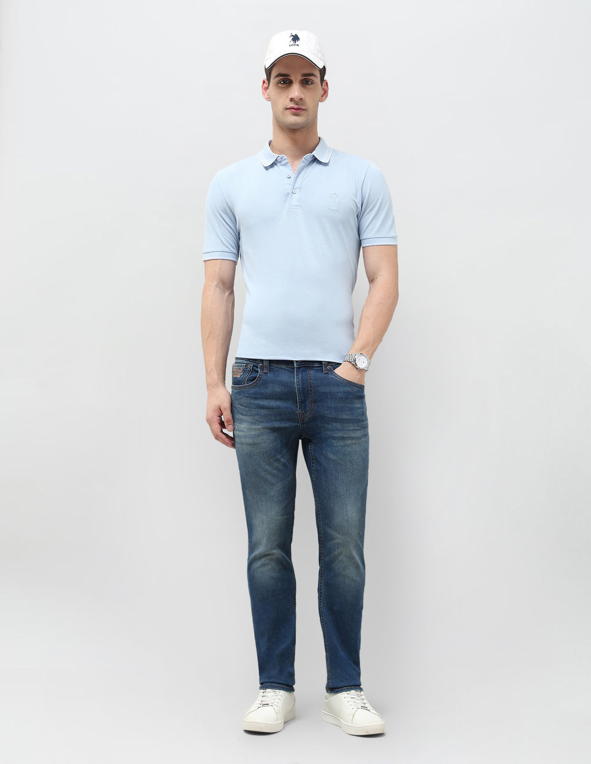 Story: These tinted wash solid Jeans for men offer a contemporary casual look, combining comfort and durability for effortless everyday style.