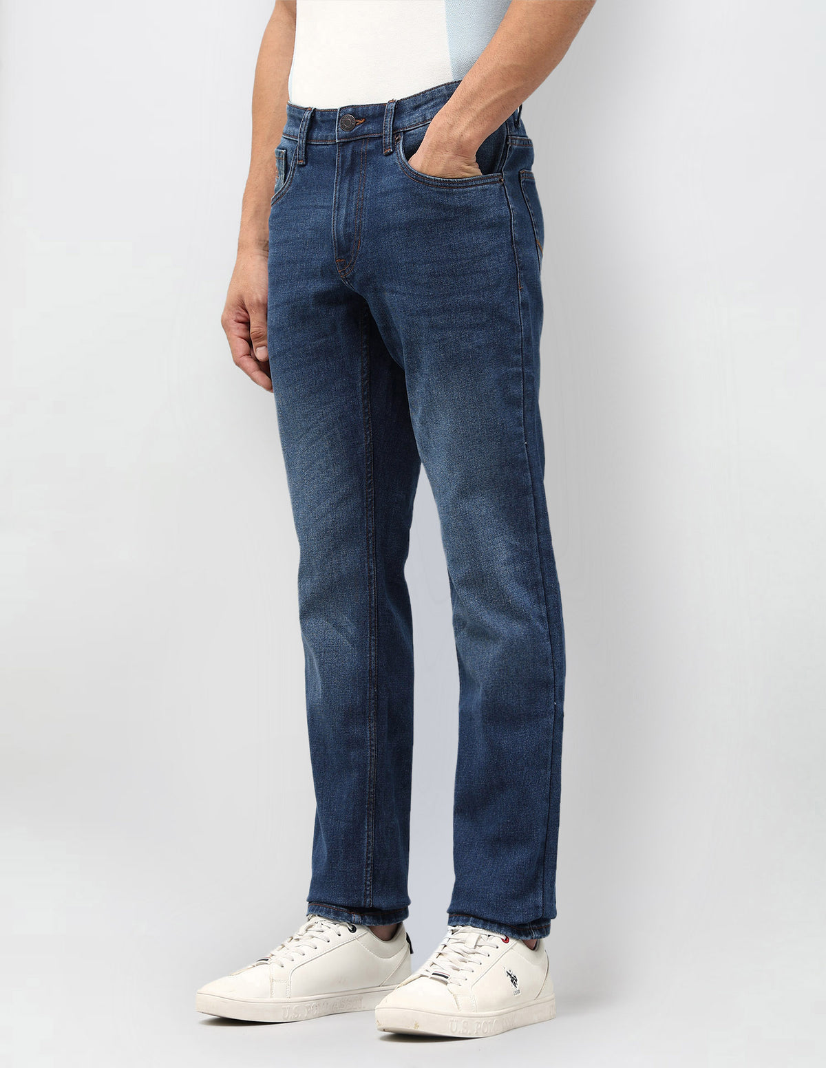 Story: These solid men's jeans offer timeless appeal for casual wear, combining comfort and versatile style effortlessly.