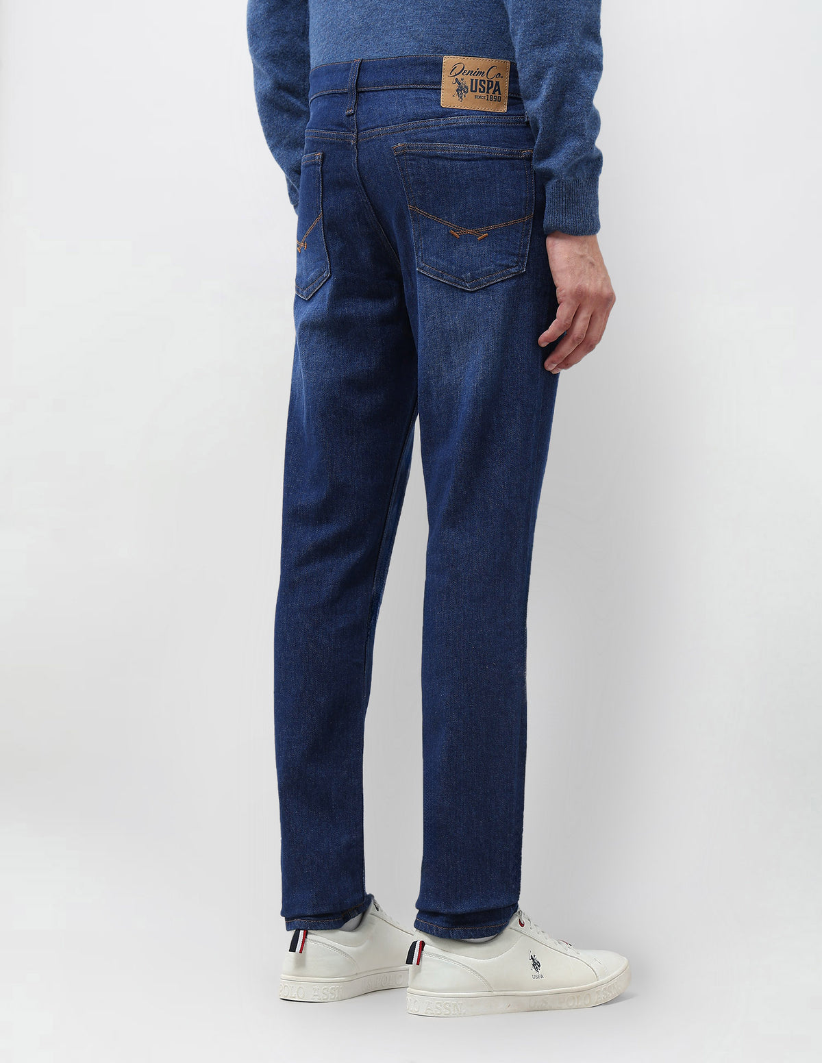Story: Brandon Slim tapered fit with whiskered detailing in stretchable cotton, delivering versatile style and all-day wearing comfort.