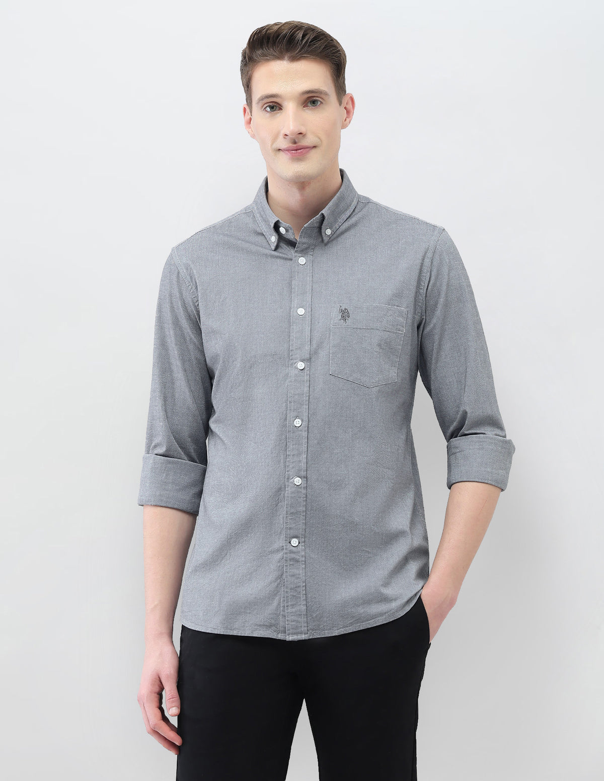 - Embroidered logo at chest pocket