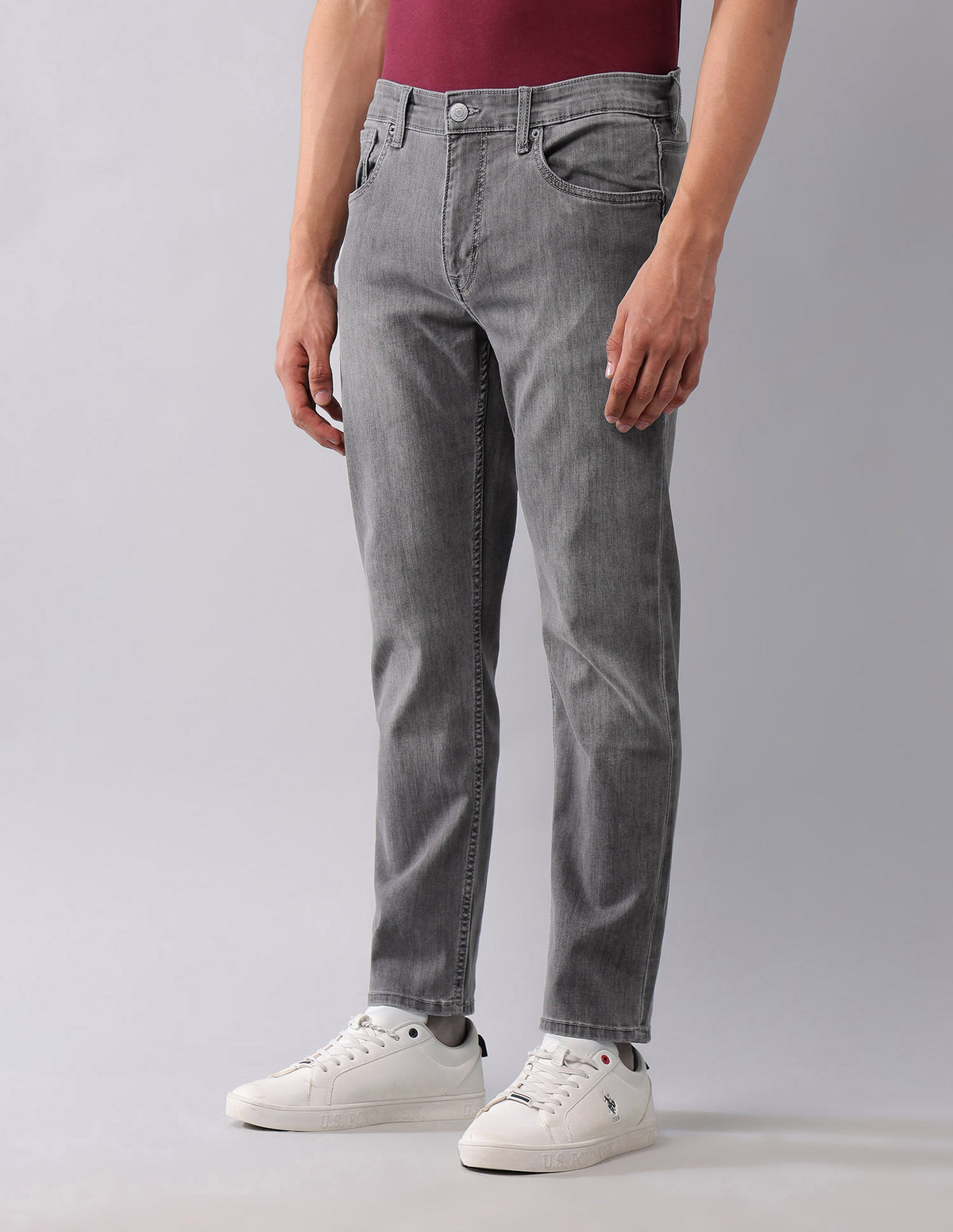 Story: Solid pattern meets casual comfort in these men's jeans, designed for versatile style in relaxed settings.