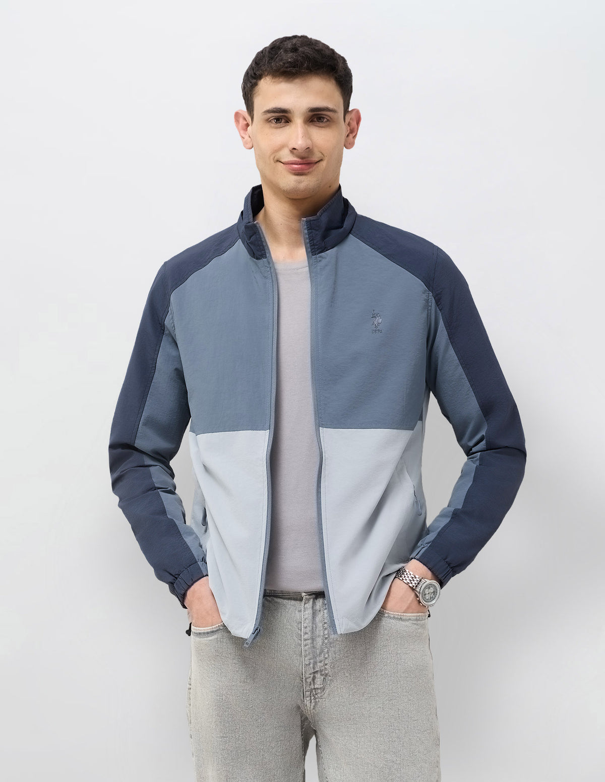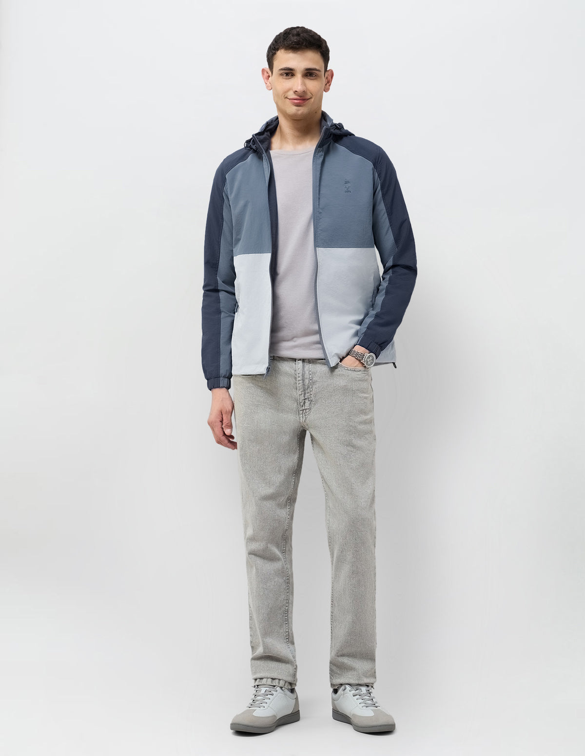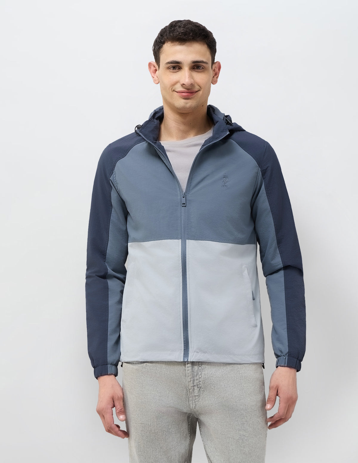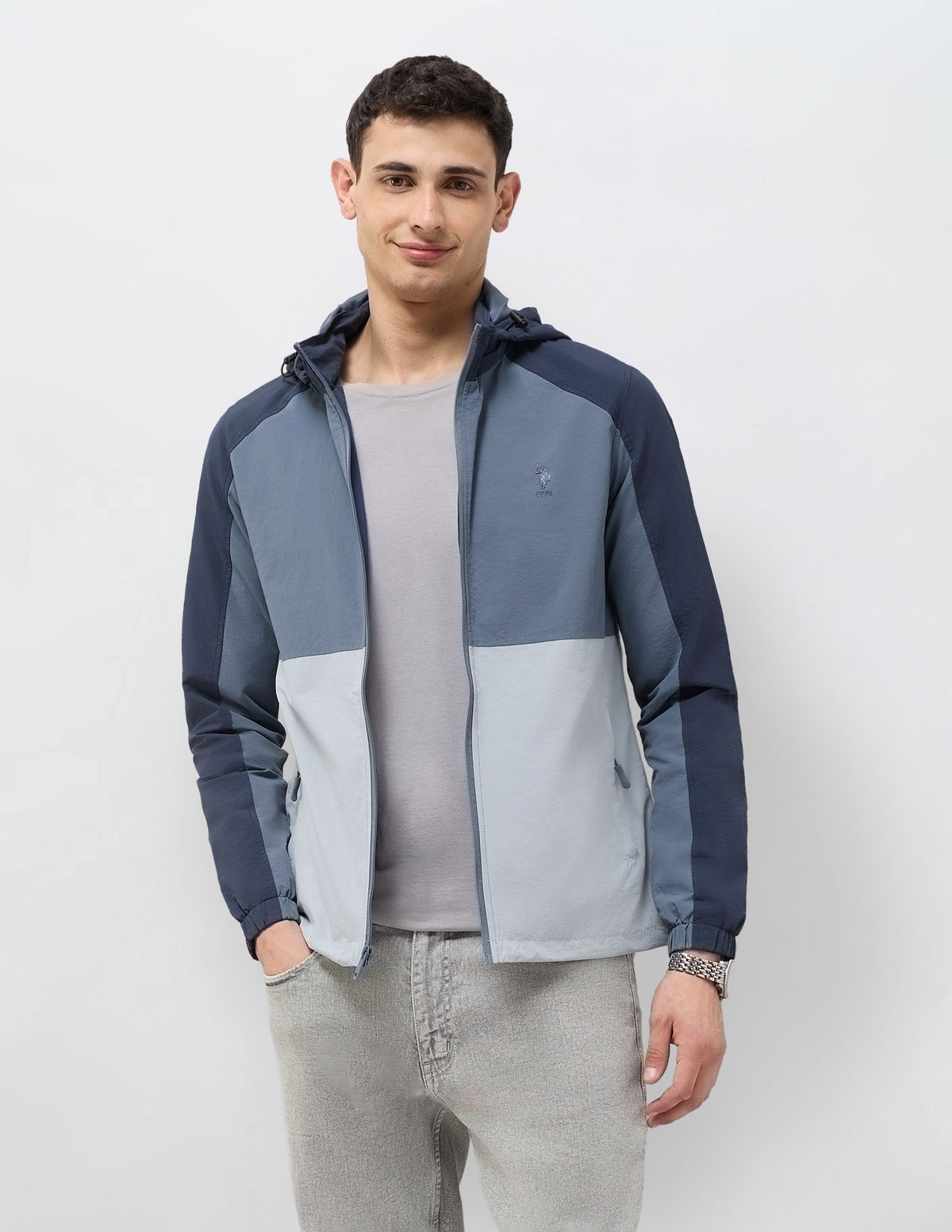 Colour Blocked Detachable Hood Jacket