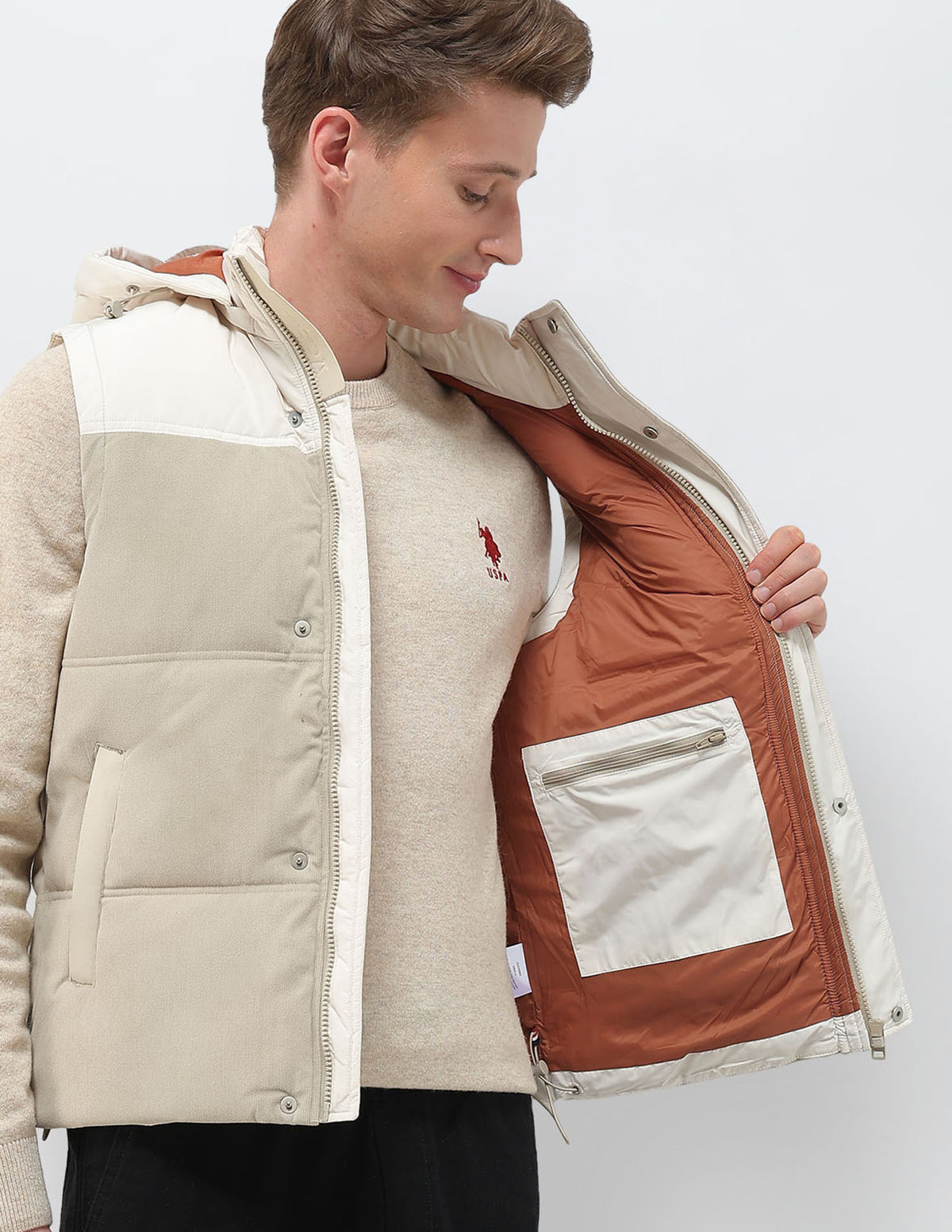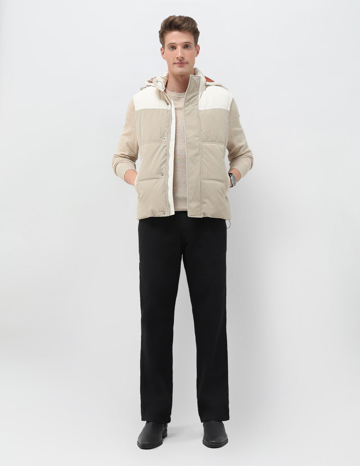 - High neck with detachable hood