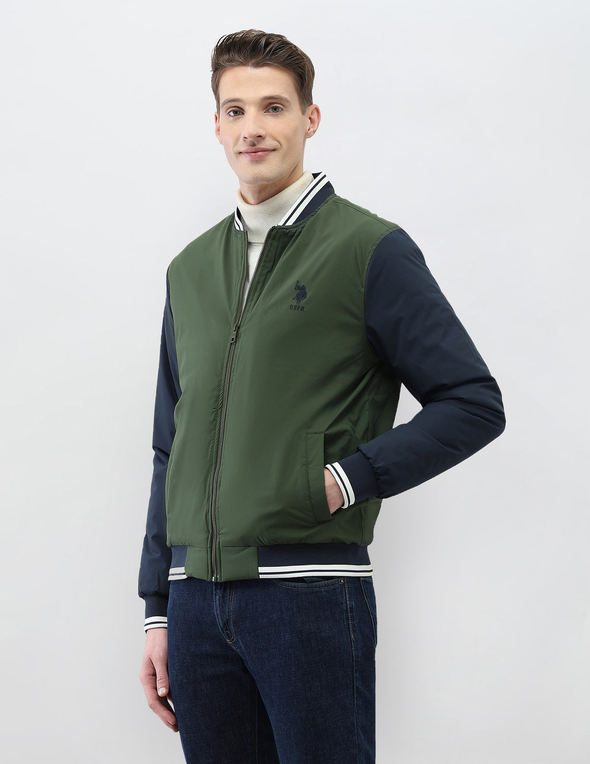 Colour Blocked Regular Fit Varsity Jacket
