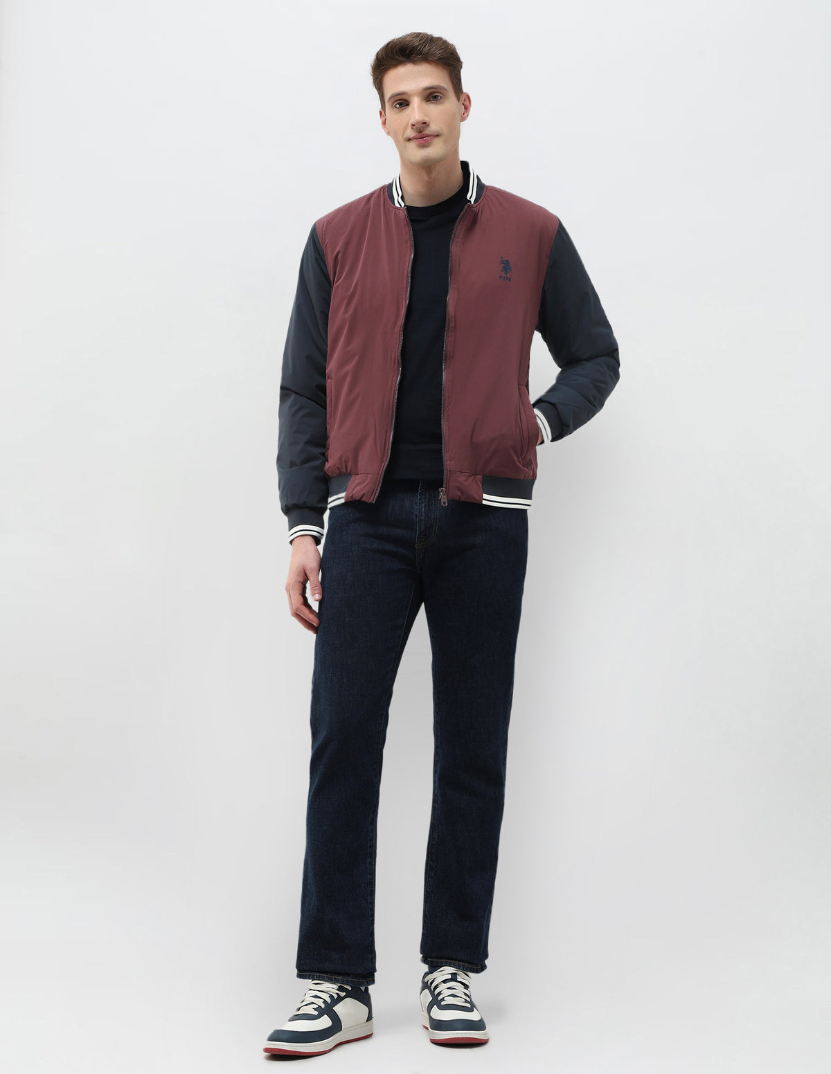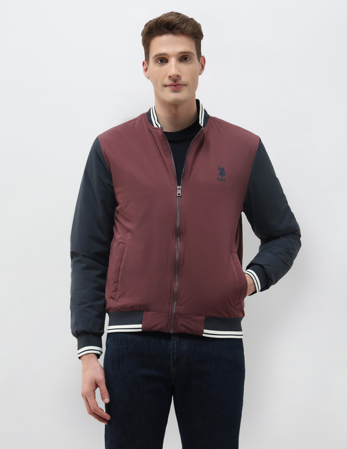 Colour Blocked Regular Fit Varsity Jacket