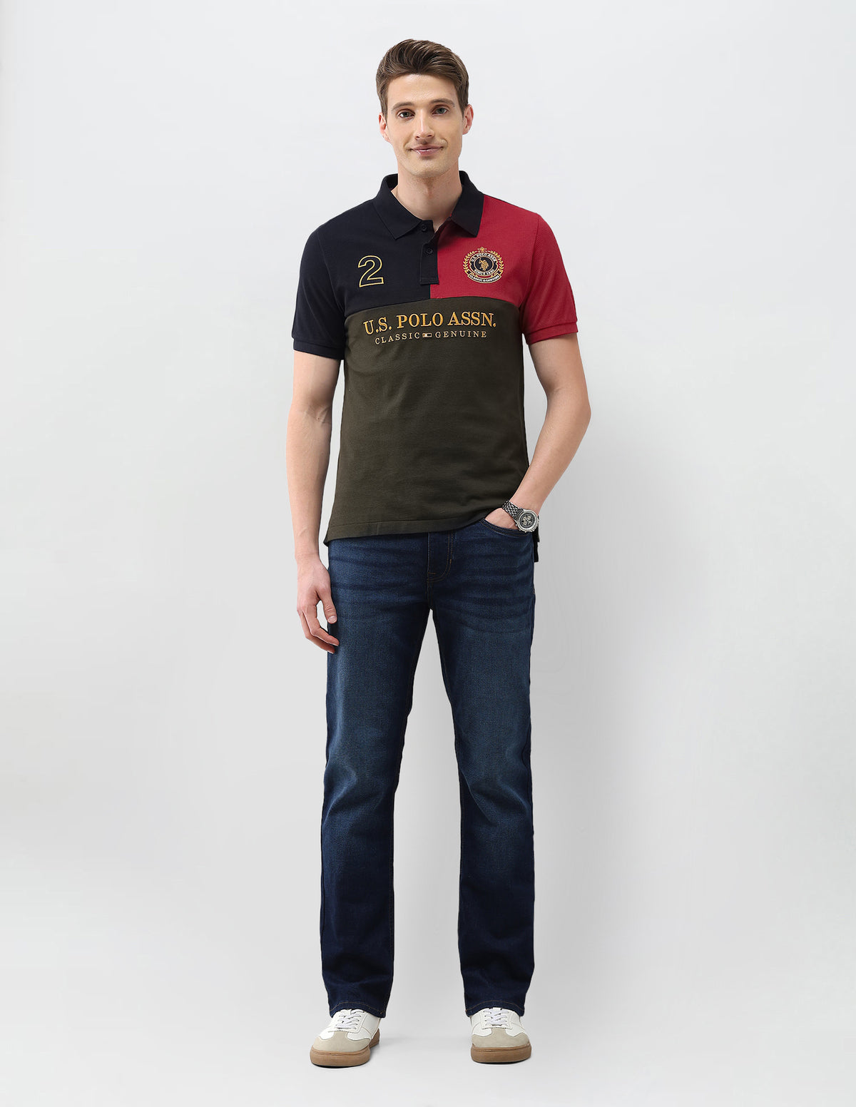 Colourblocked Brand Embroidered Slim Fit Polo Shirt