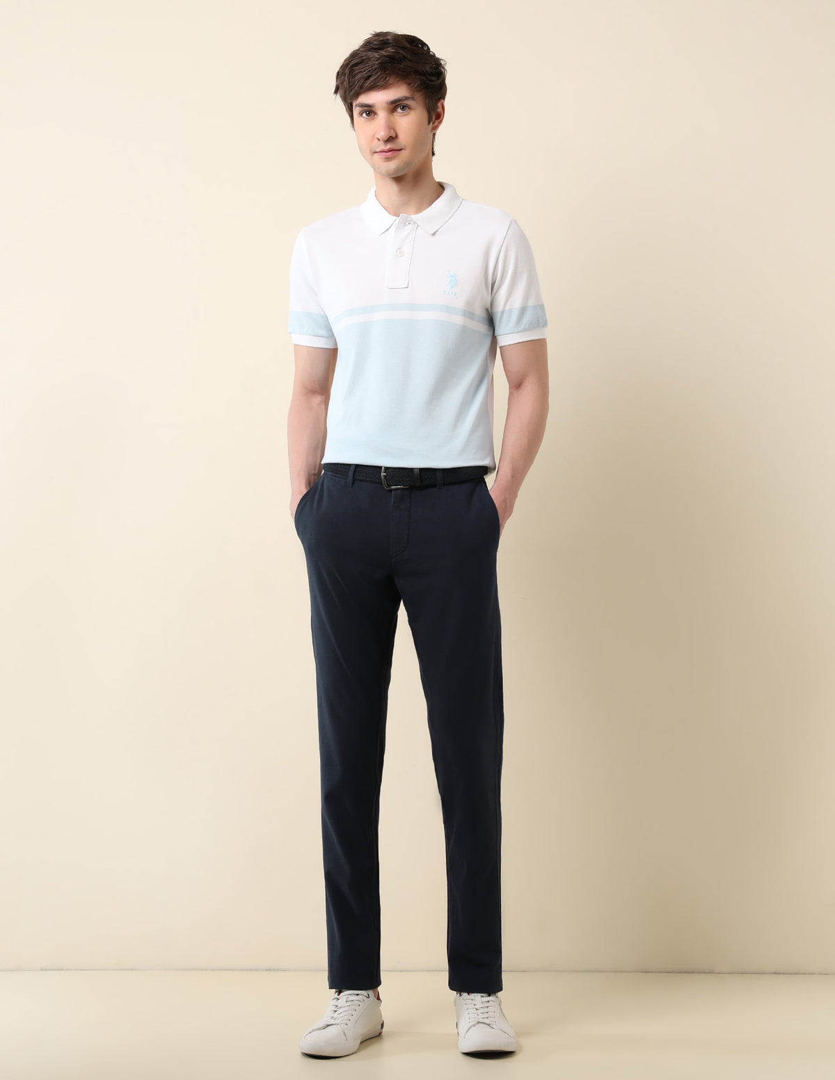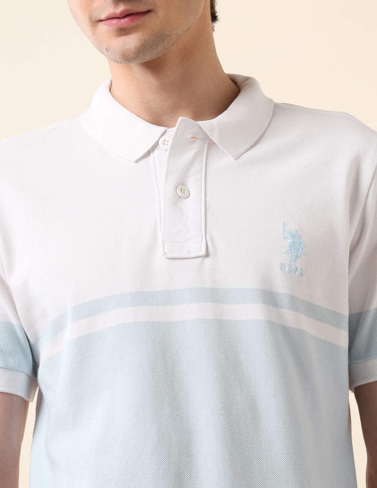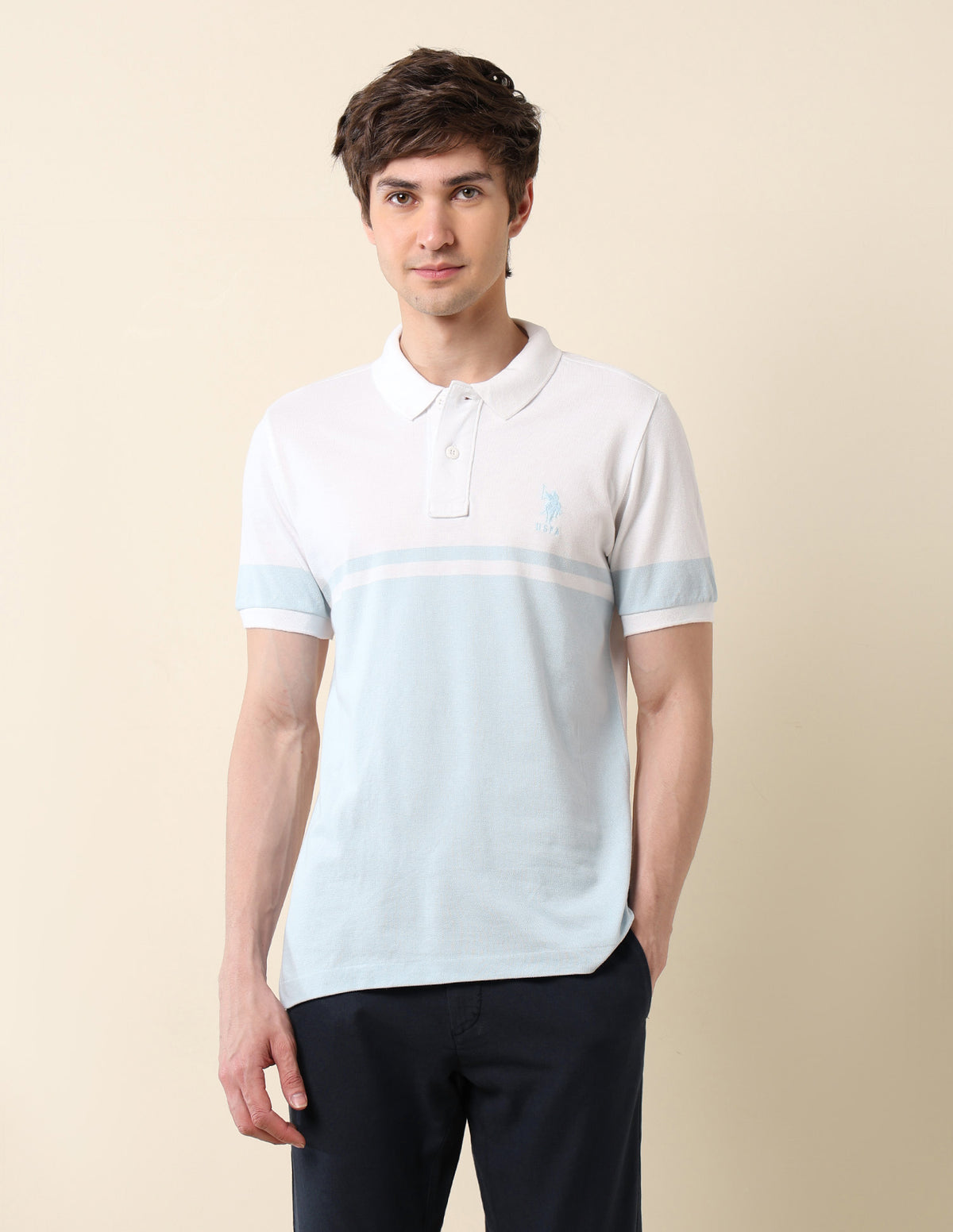 Story: Stand out in this color-block Classic men's tee, combining casual comfort with eye-catching style.