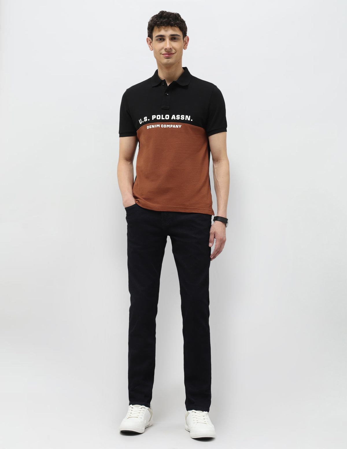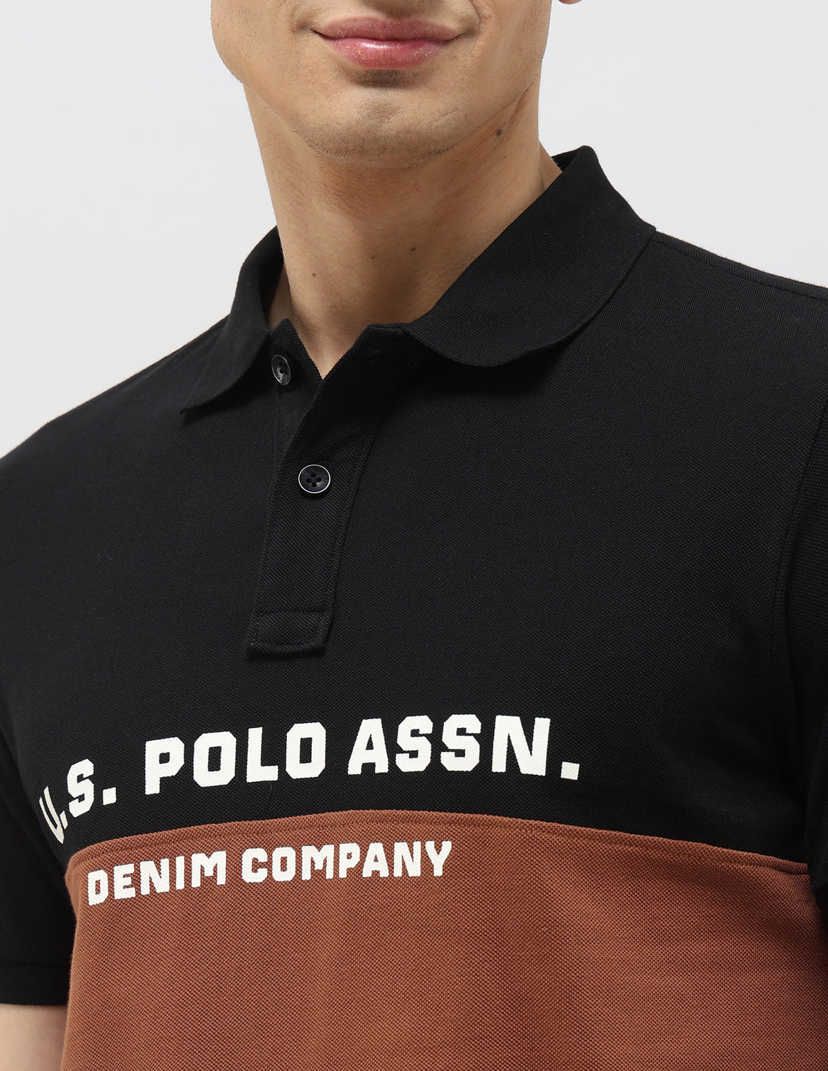 Story: Make a statement with this men's casual color-block T-shirt, perfect for a trendy look.