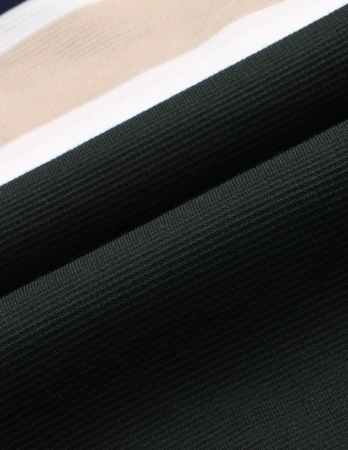 - Ribbed collar and sleeve hems