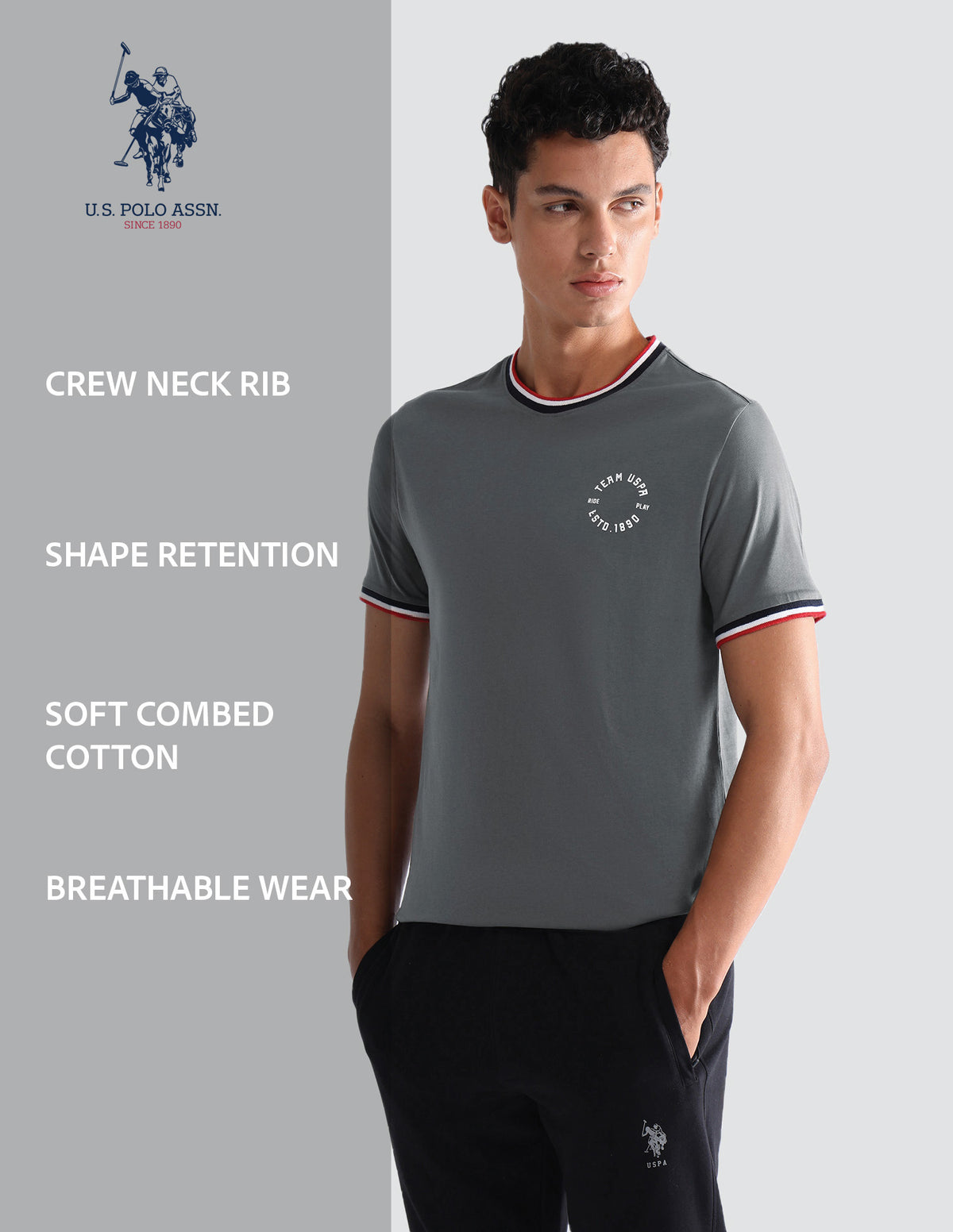 - Ribbed crew neck ensures shape retention that withstands repeated wash and wear
