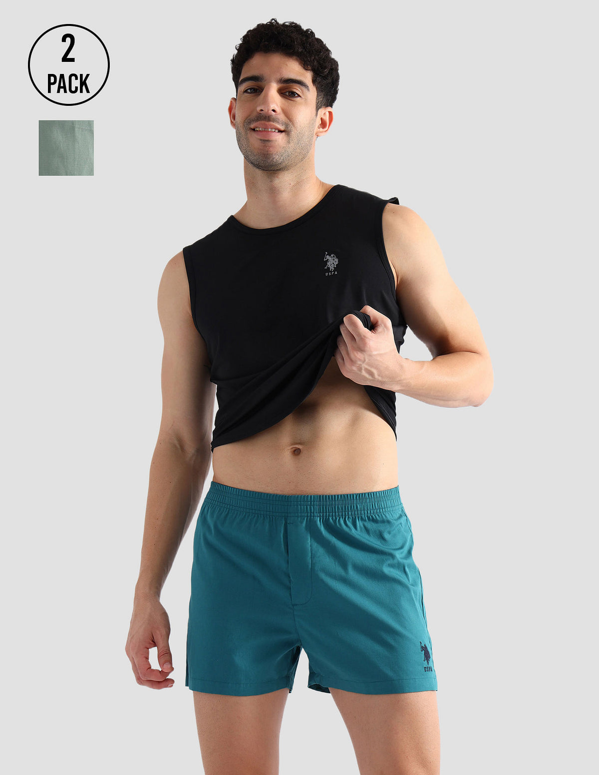 | Pack Of 2: | Mid-rise waist sits comfortably at your waist | Brand printed elasticised waistband | Signature embroidered logo at side | Thigh length | Versatile solid pattern | Country Of Origin - India