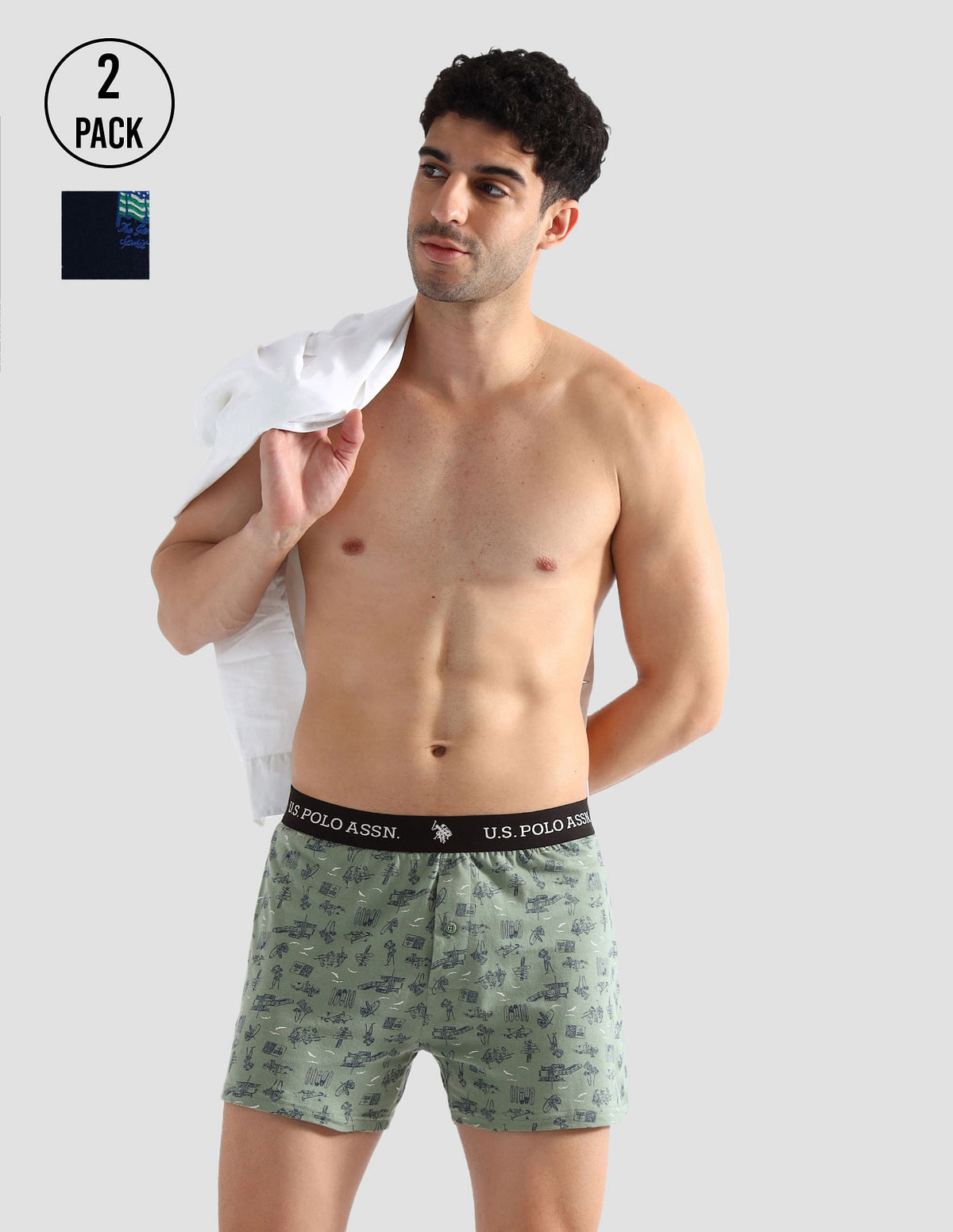 | Pack Of 2: | Mid-rise waist sits comfortably at your waist | Brand printed elasticised waistband | Signature embroidered logo at side | Thigh length | Versatile printed pattern | Country Of Origin - India