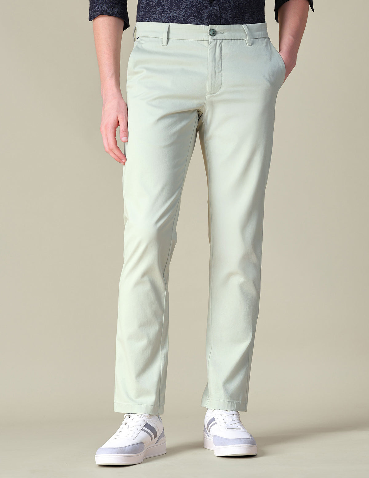 Story: Stretchable cotton trousers in Denver slim fit provide men with a streamlined casual option that balances contemporary tailoring with effortless day-long wearability and movement.