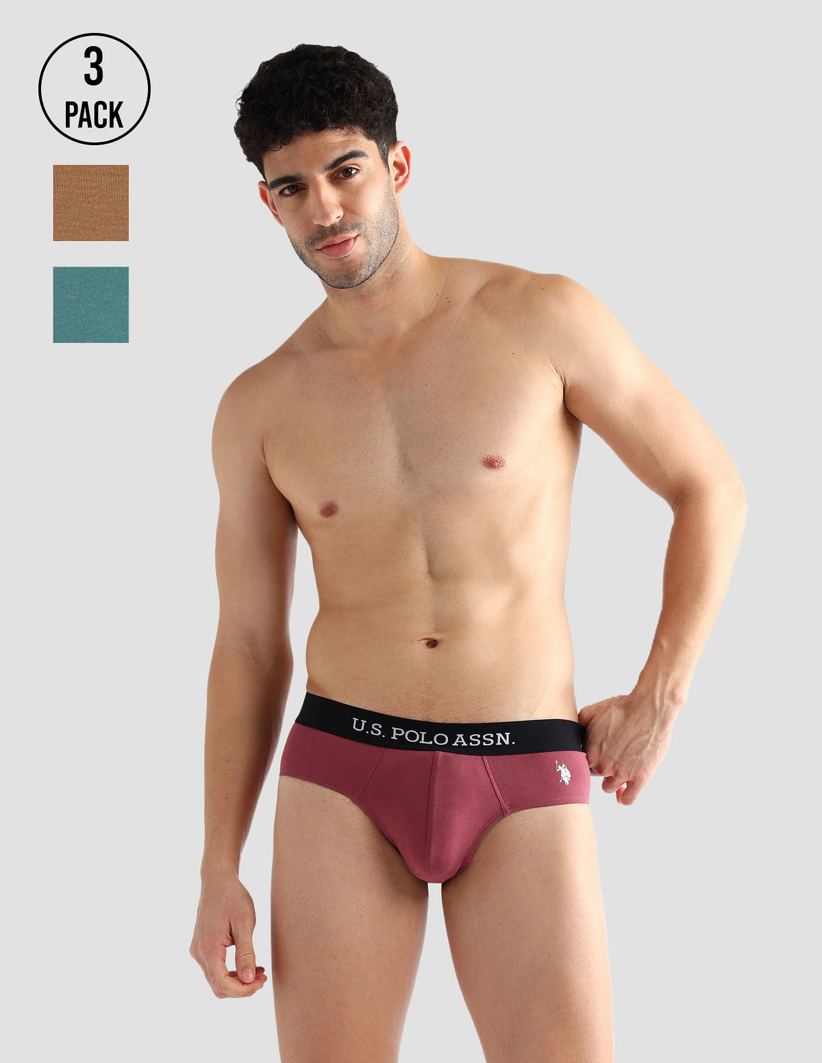 | Pack Of 3: | Mid-rise sits comfortably at your waist | Super soft elasticised waistband with brand detail | Double-layered pouch | Full front and rear coverage | Versatile solid pattern | Knitted | Country Of Origin - India