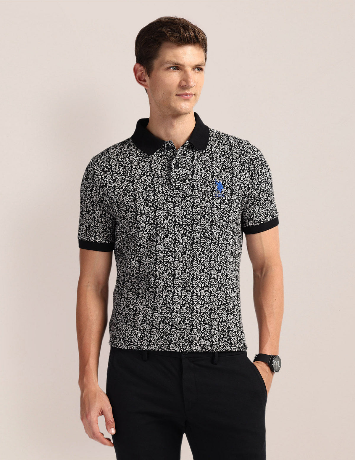 Floral Print Slim Fit Polo Shirt