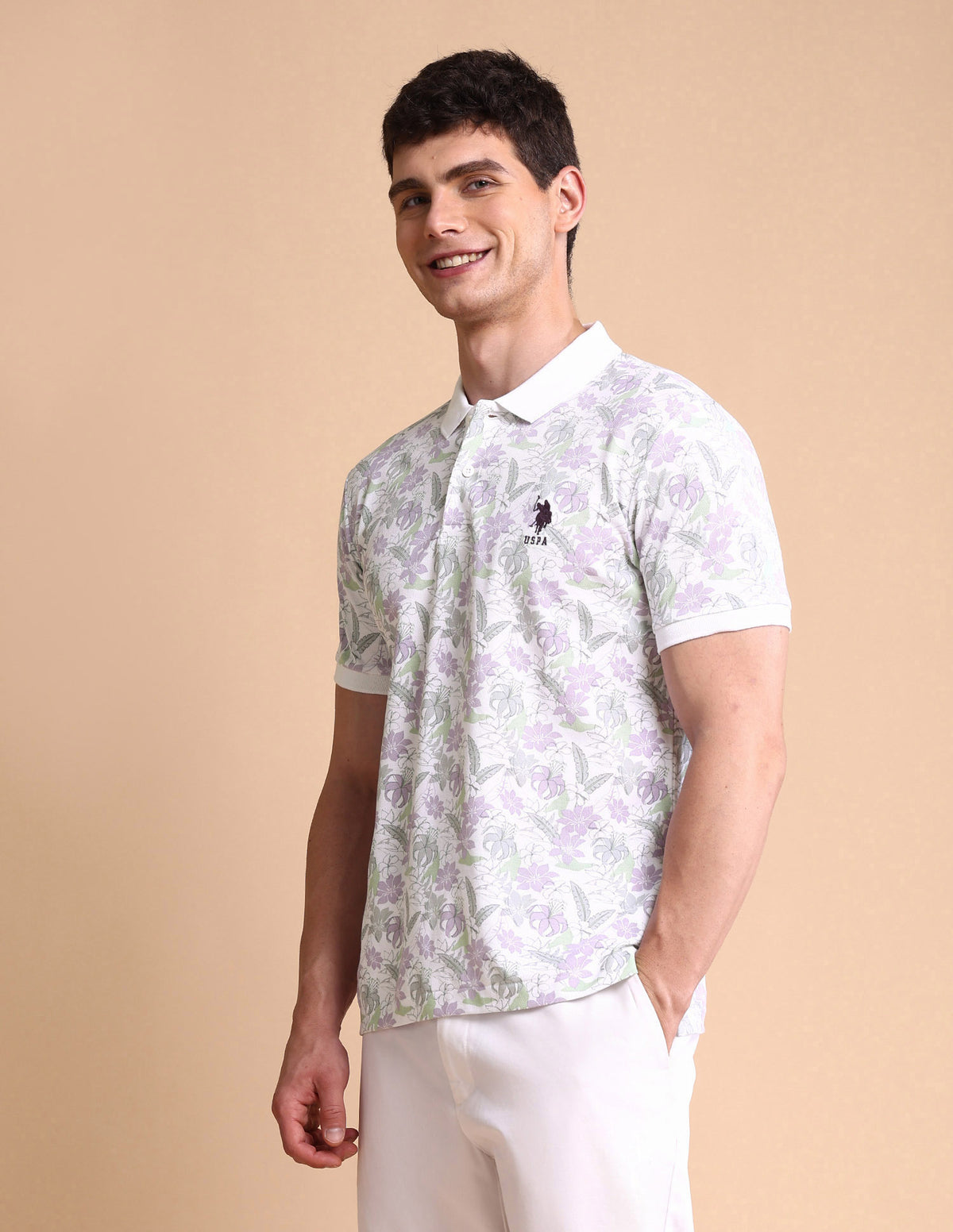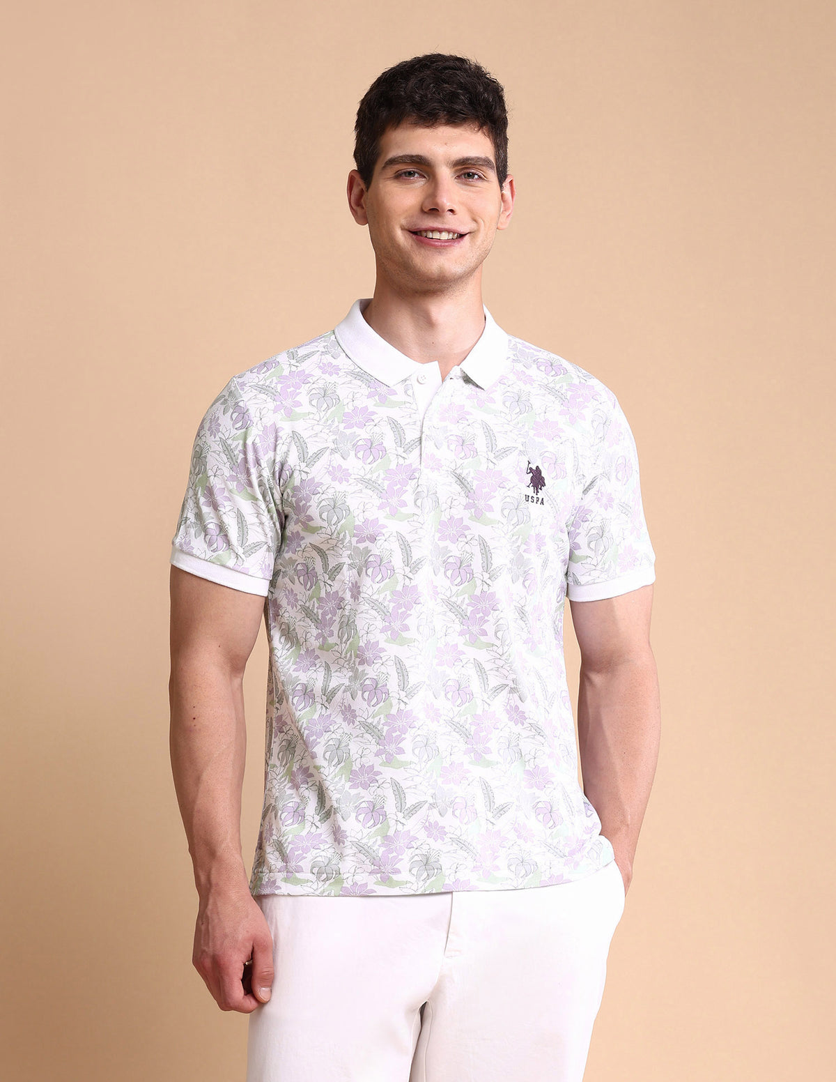 Floral Printed Slim Fit Polo Shirt