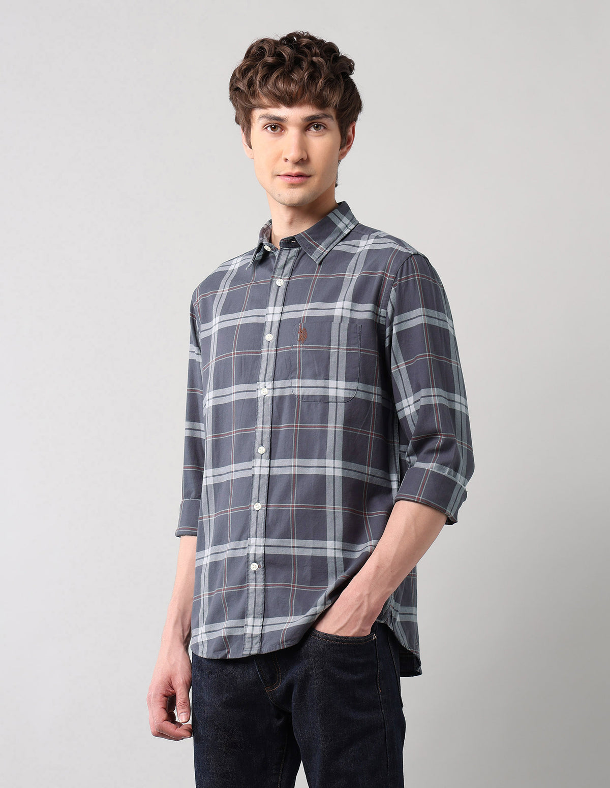 Story: Add a touch of style to your casual wardrobe with this checked shirt. Perfect for laid-back occasions.