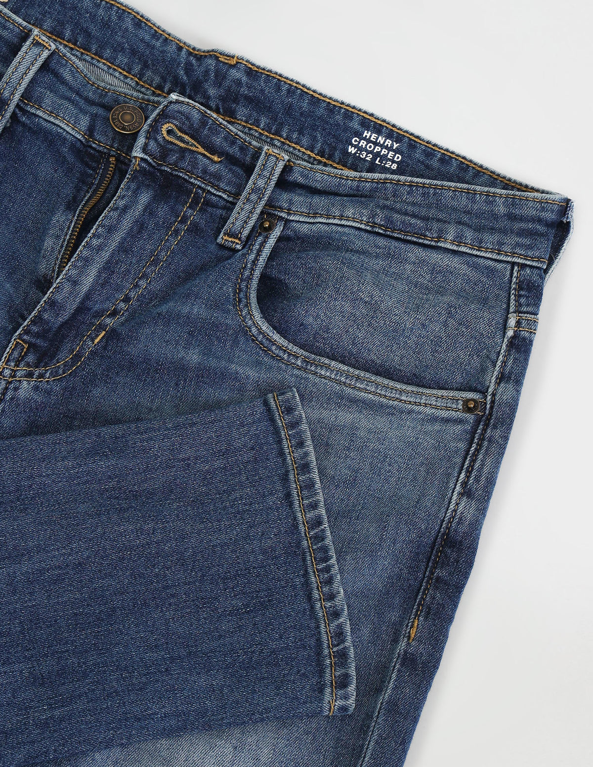 Henry Tapered Fit Cropped Blue Jeans