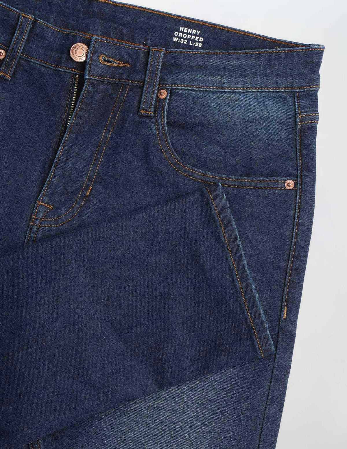 Story: Stone-washed Henry Tapered jeans in flexible cotton blend, delivering smooth comfort and durable construction for everyday wear.