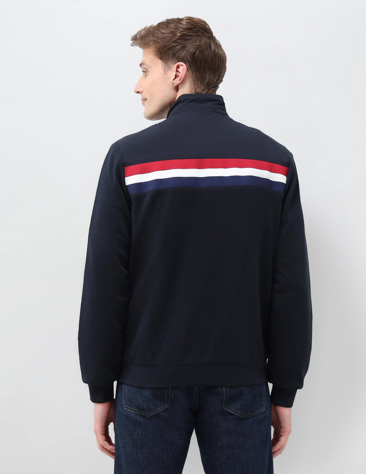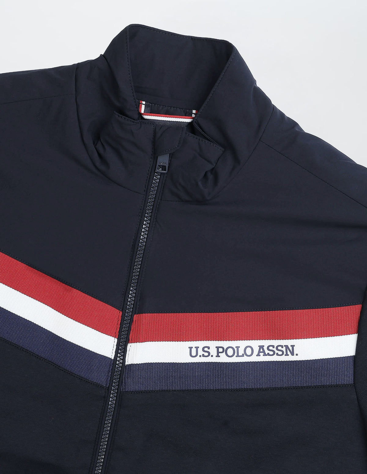 Story: This men's jacket showcases a dynamic diagonal-stripes pattern, ideal for casual occasions with bold directional style and contemporary appeal.