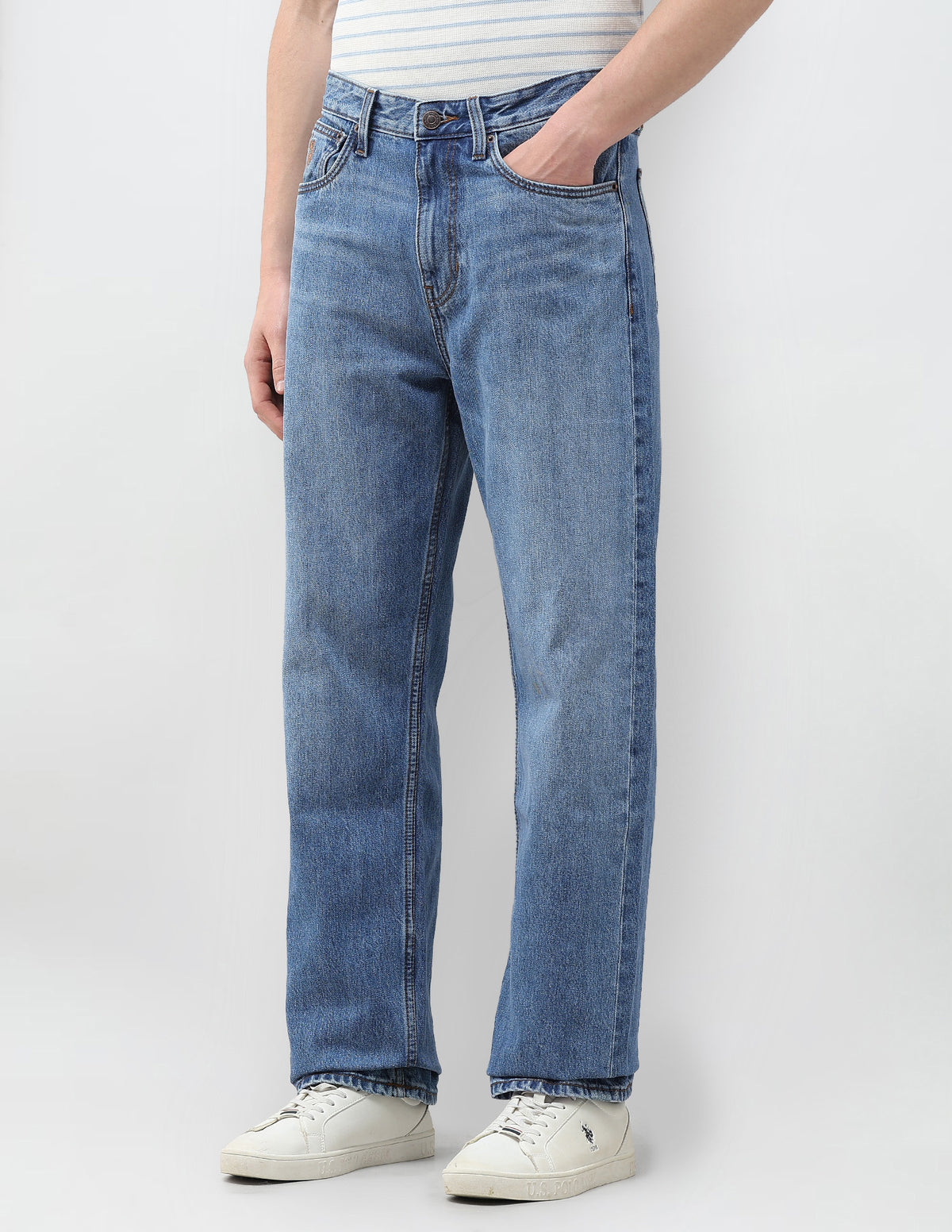 Story: These stretchable 5-pocket fashion denim jeans feature a Logan loose fit with whiskered treatment, designed for men seeking relaxed casual style and comfort.