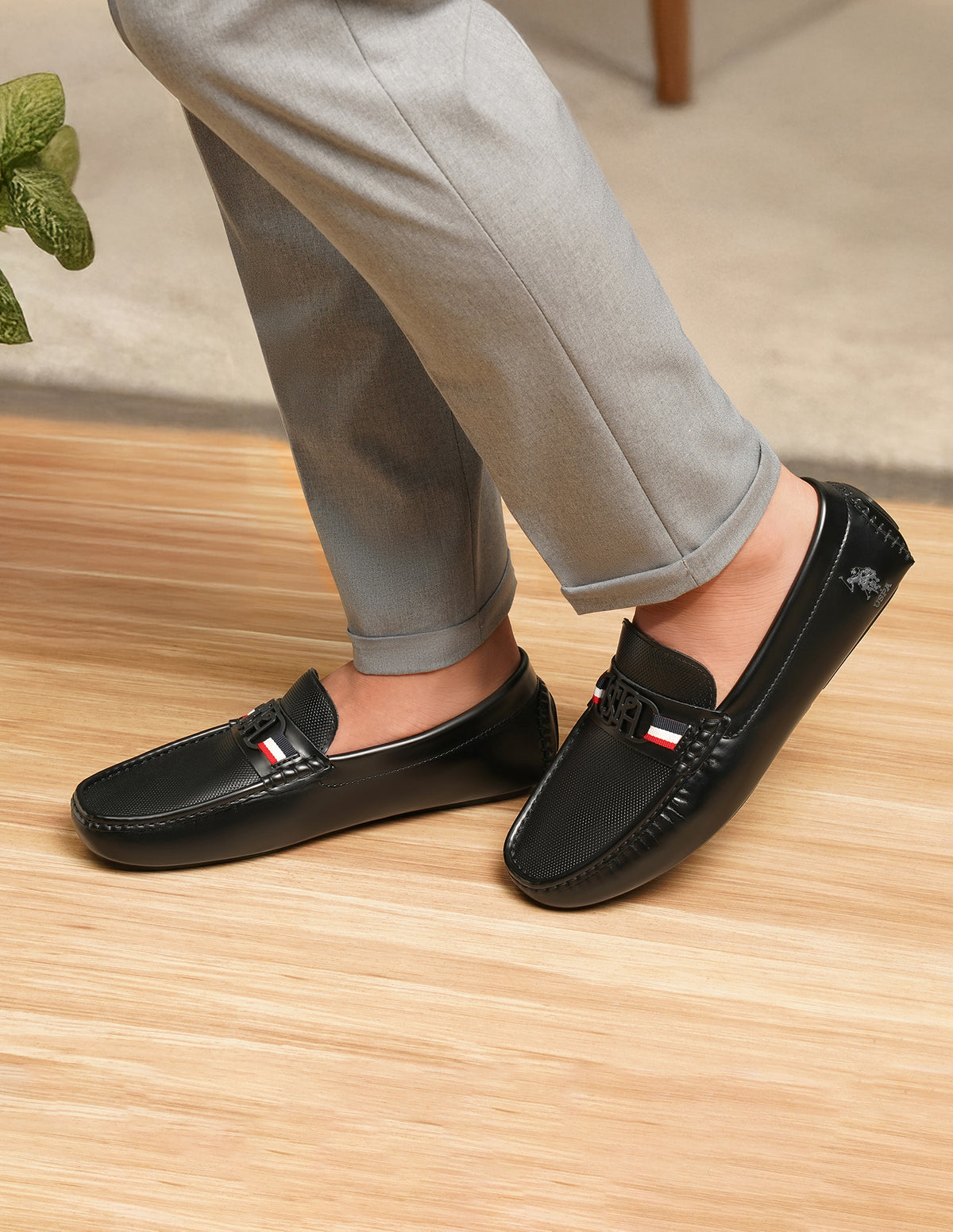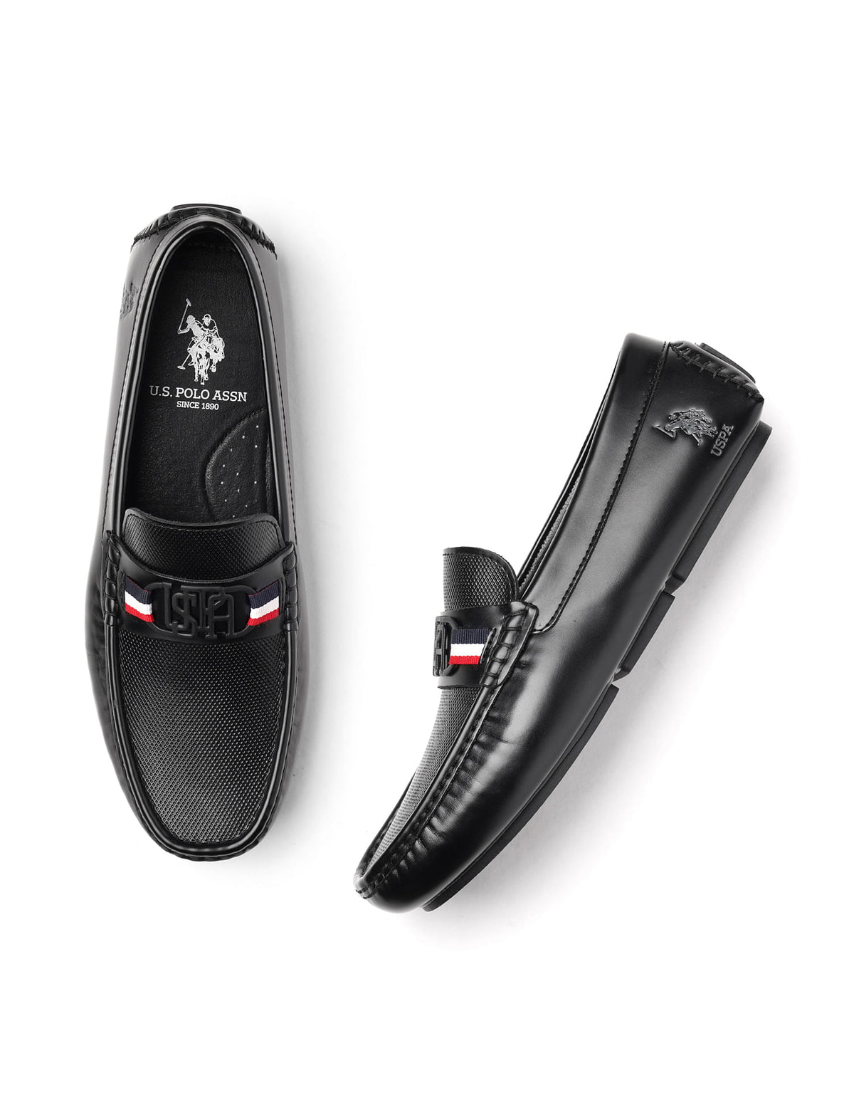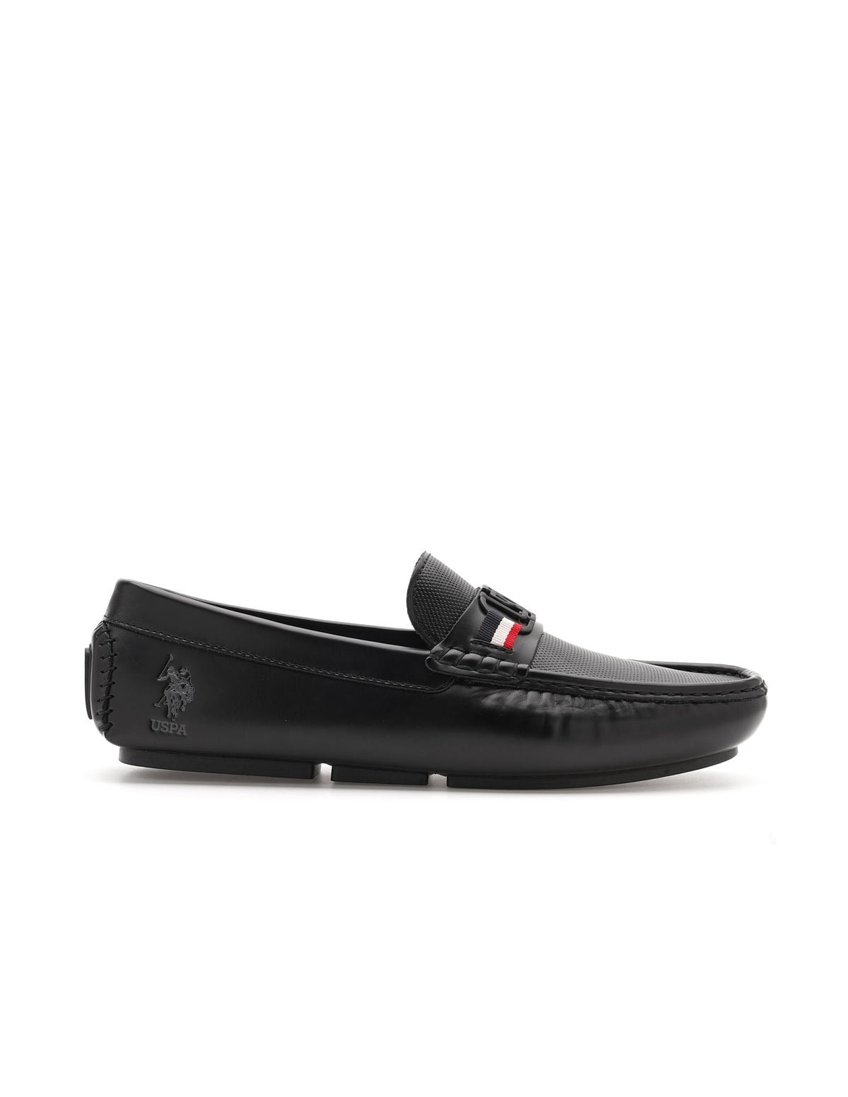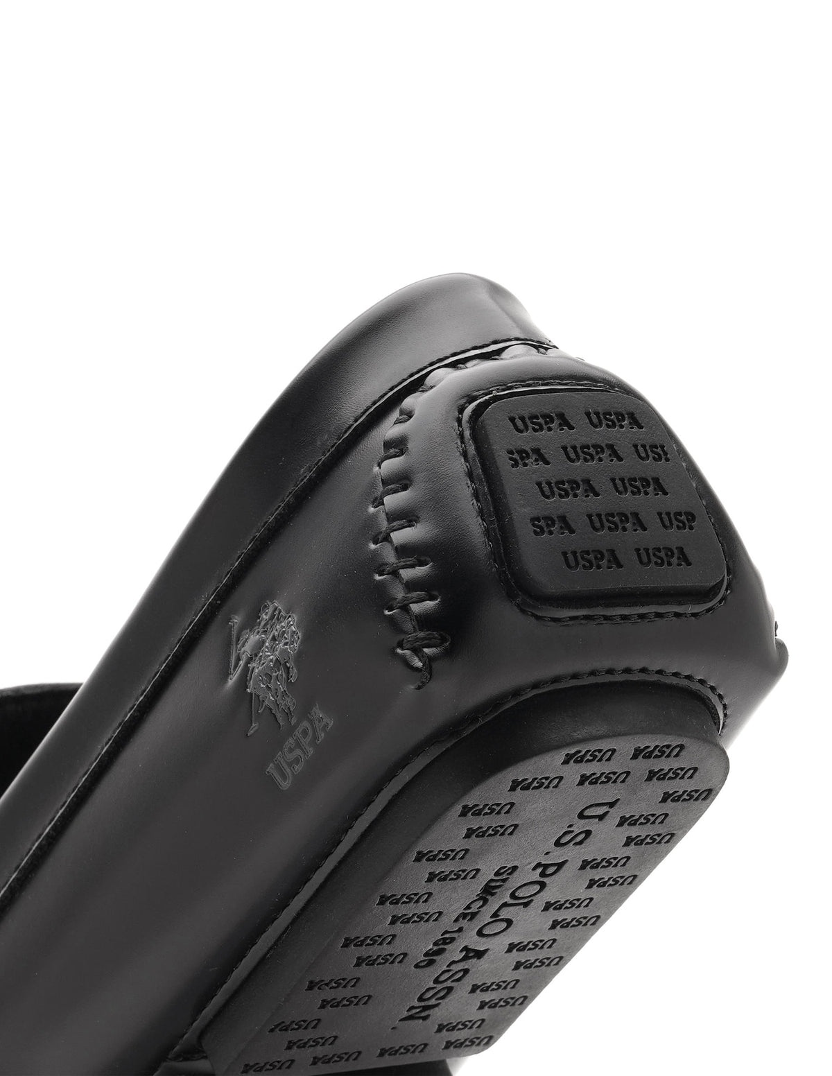 | Round toe | Panelled upper with metallic logo accent | Reinforced heel counter | Cushioned footbed | Textured outsole | Solid pattern |