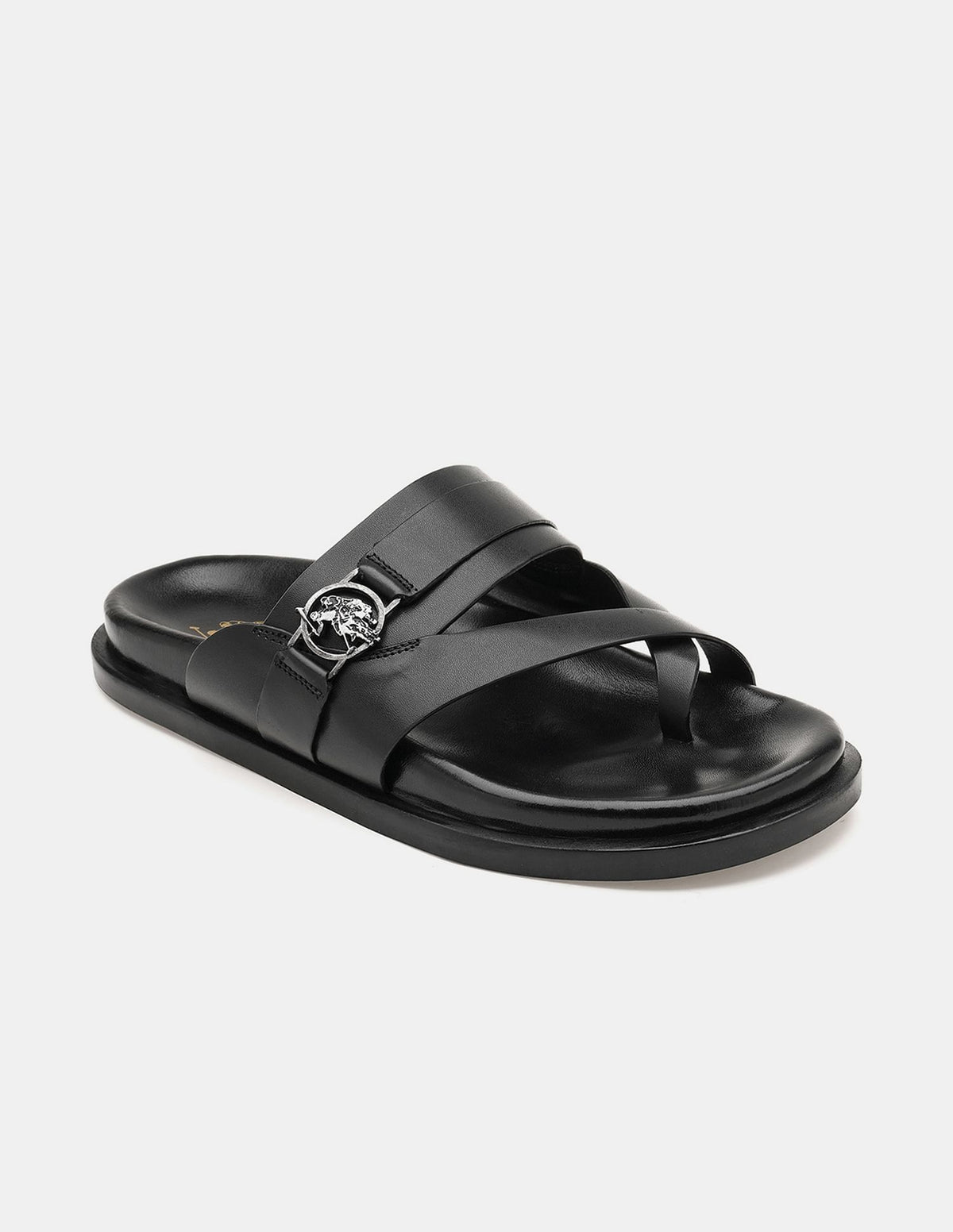 | Open toe | Double strap with adjustable buckle closure across vamp | Ankle strap with elasticized gusset | Cushioned footbed | Textured outsole |