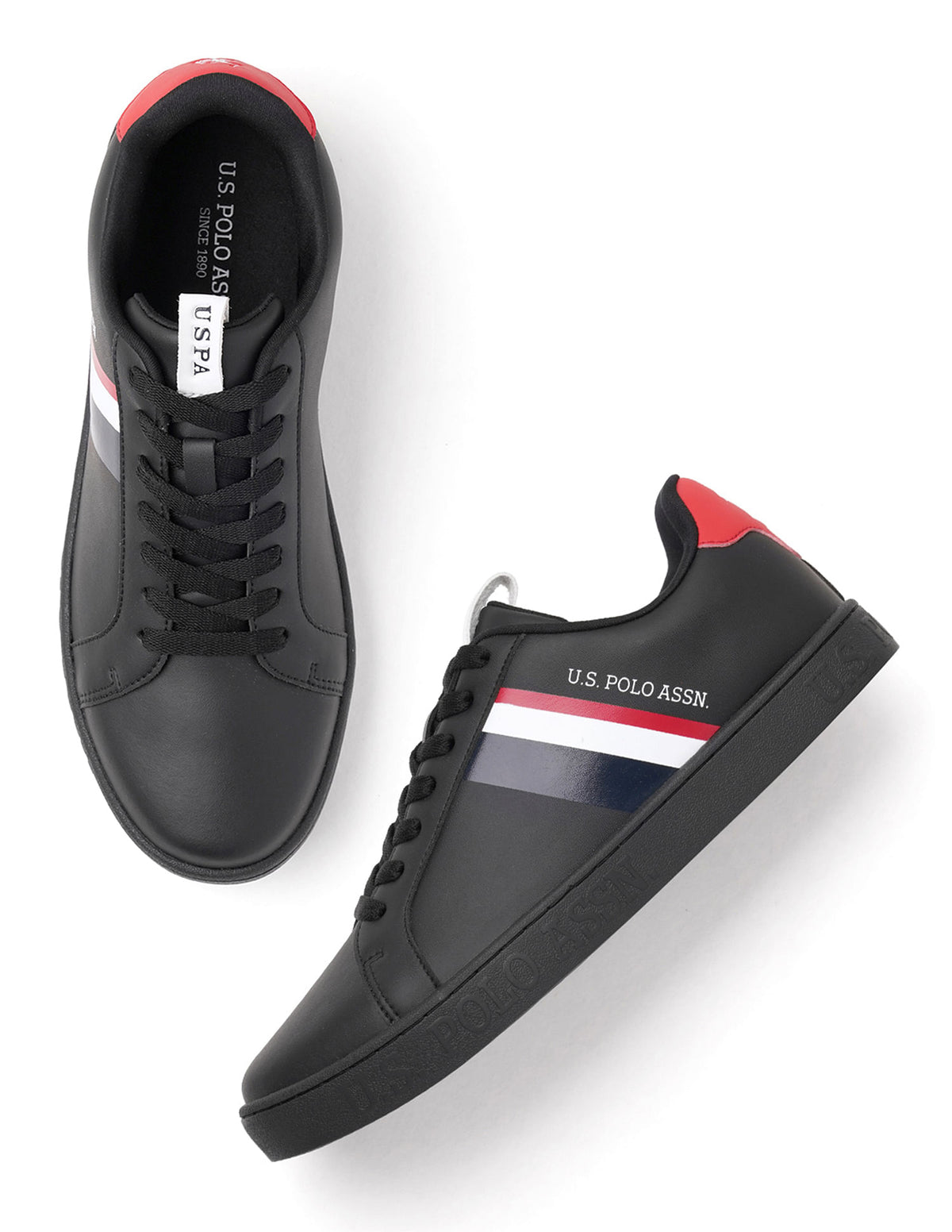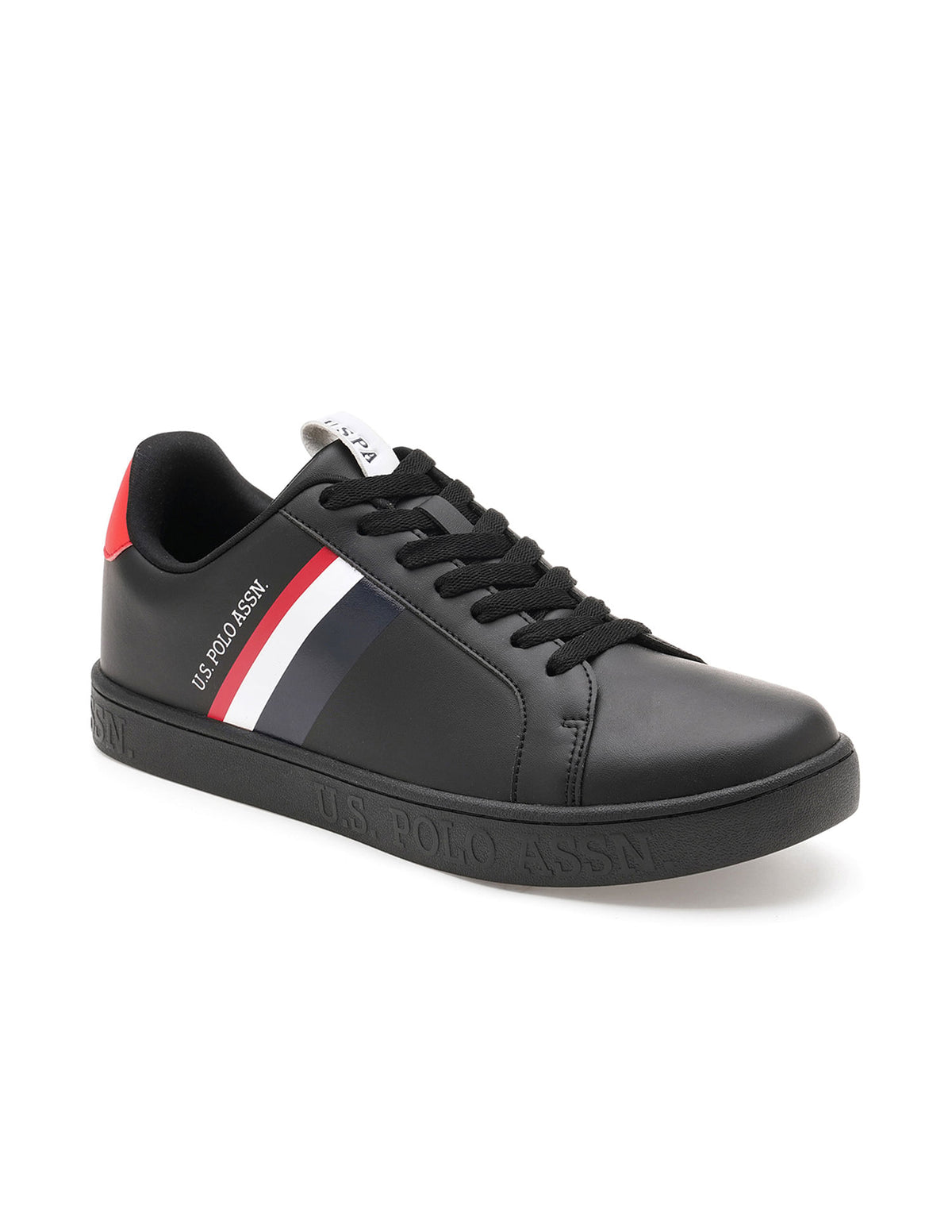 | Round toe | Central lacing | Panelled upper with logo | Padded top line | Reinforced heel counter | Cushioned insole | Textured outsole | Solid pattern |