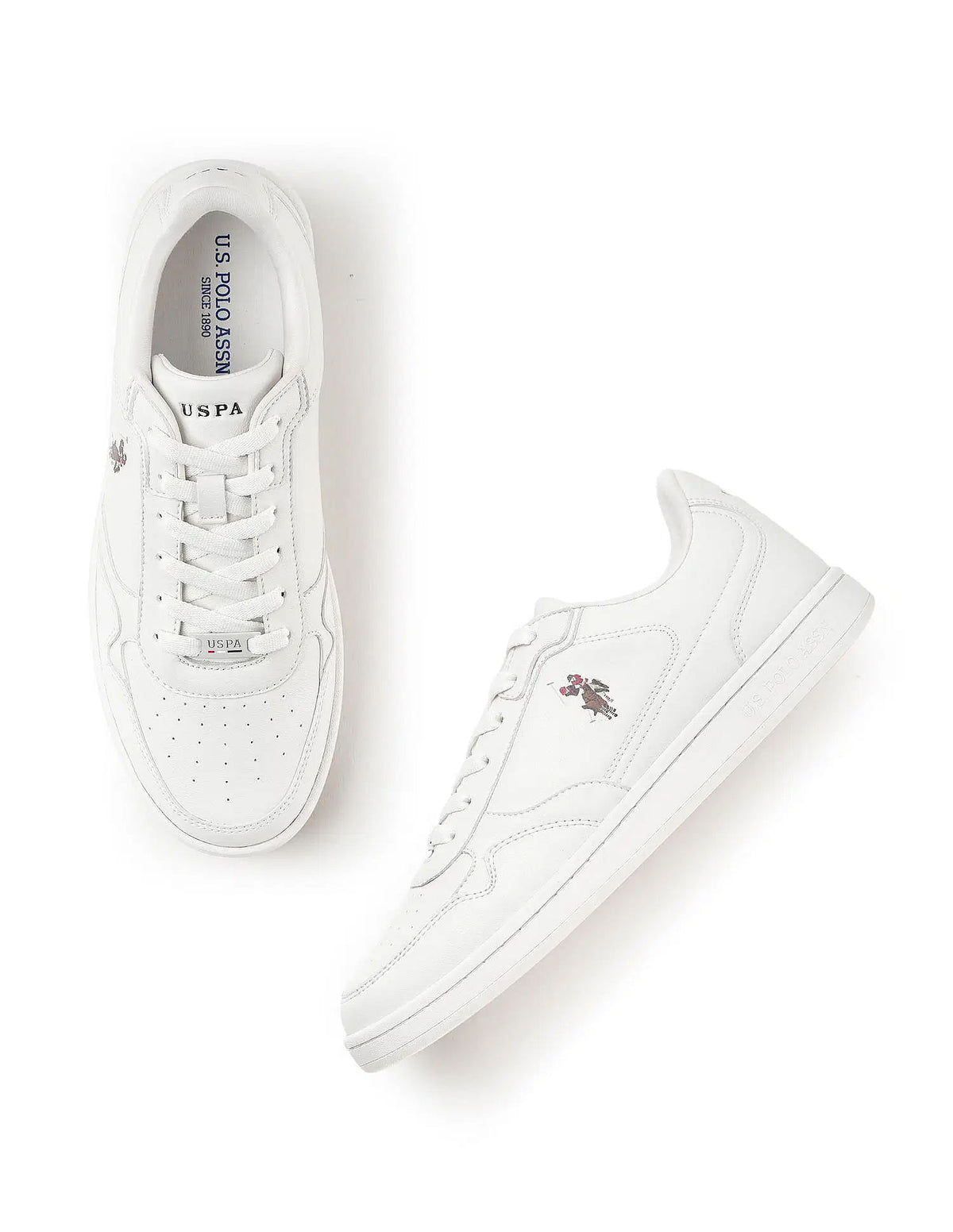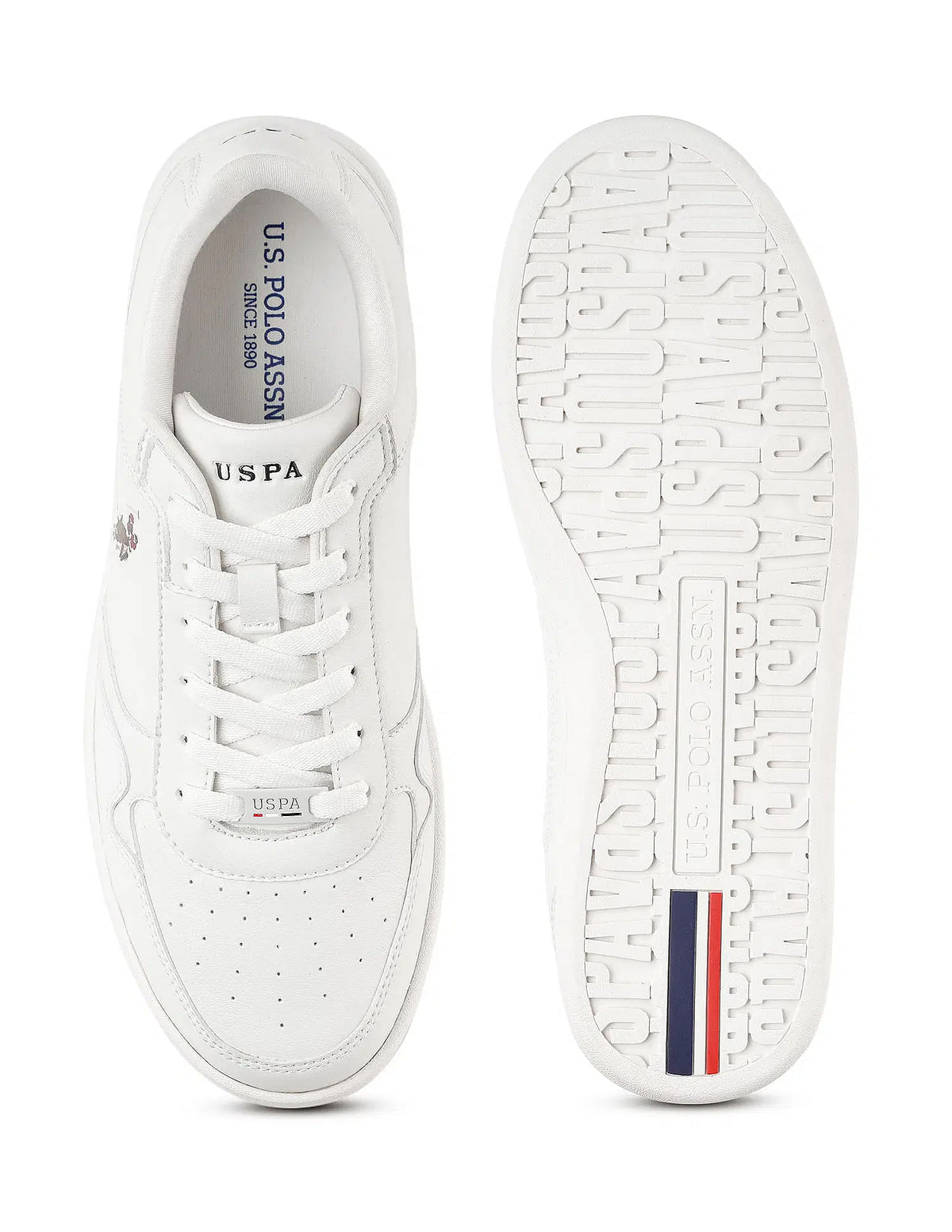 | Round toe | Central lacing | Panelled upper with logo | Padded top line | Reinforced heel counter | Cushioned insole | Textured outsole | Solid pattern |