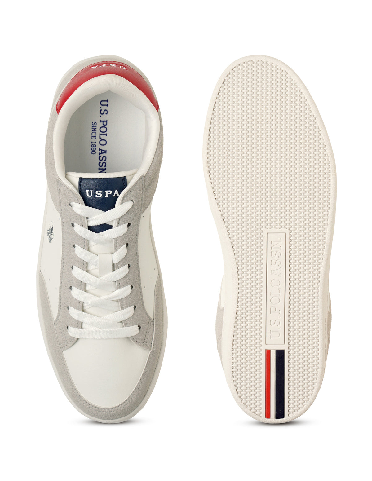| Round toe | Central lacing | Panelled upper with logo | Padded top line | Reinforced heel counter | Cushioned insole | Textured outsole | Colourblocked pattern |