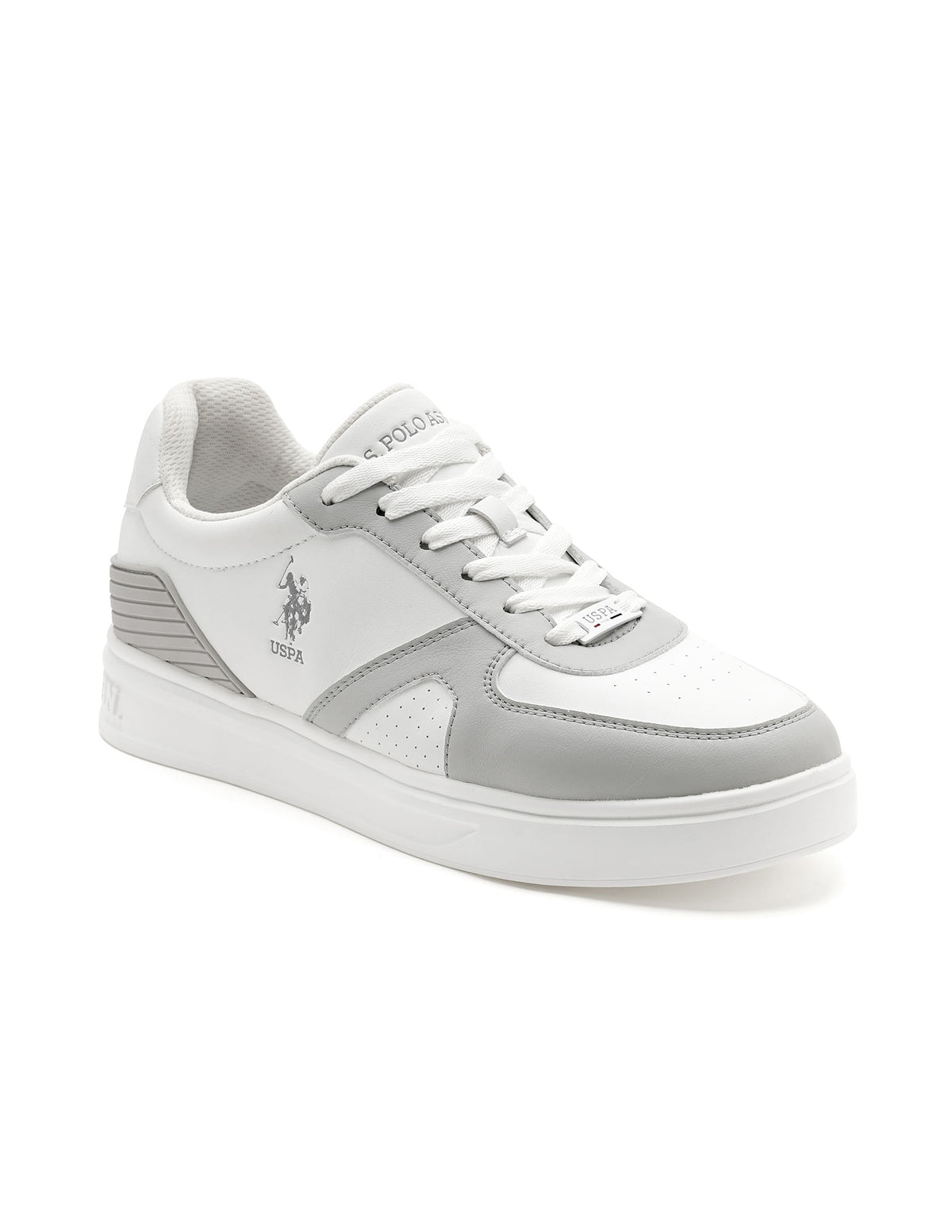 | Round toe | Central lacing | Panelled upper with logo | Padded top line | Reinforced heel counter | Cushioned insole | Textured outsole | Colourblocked pattern |