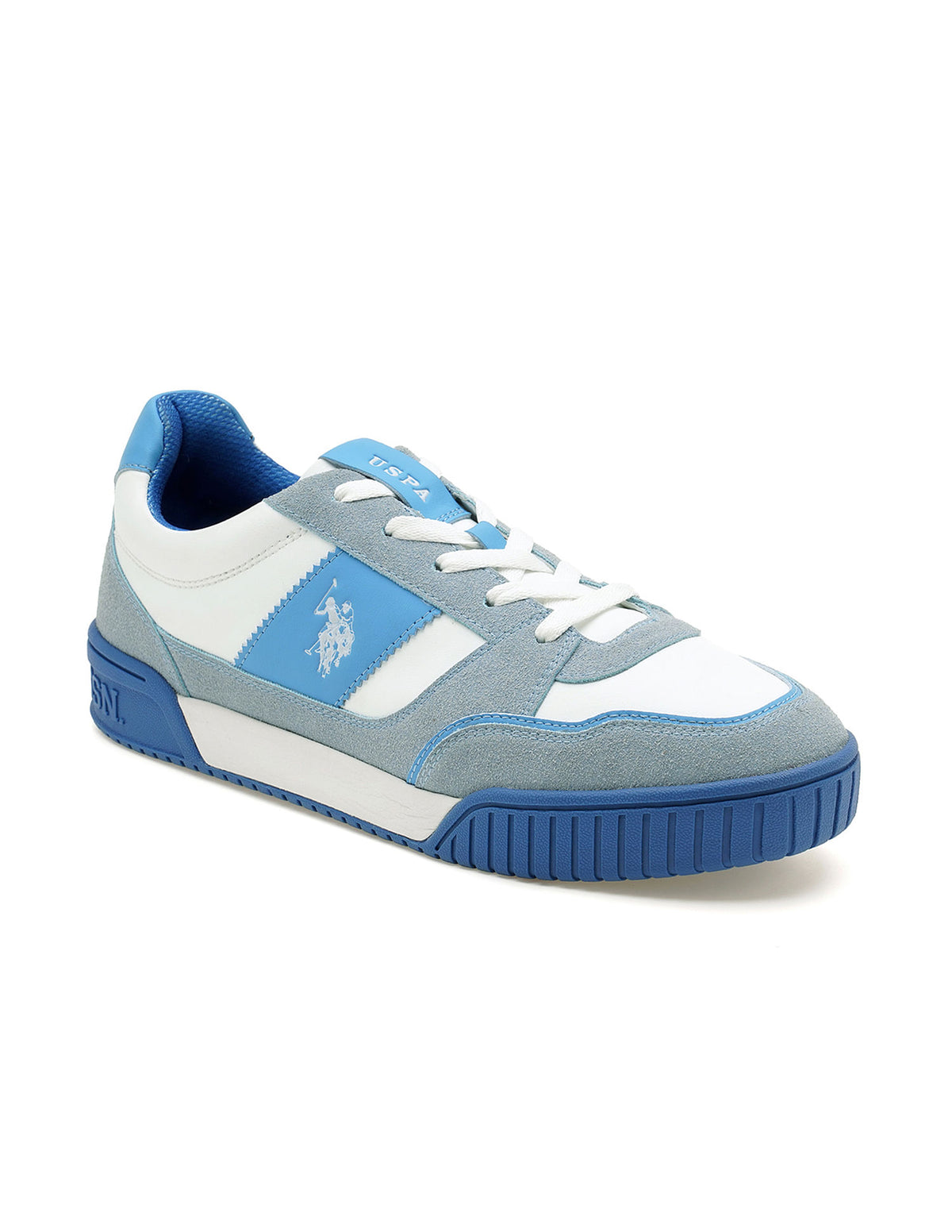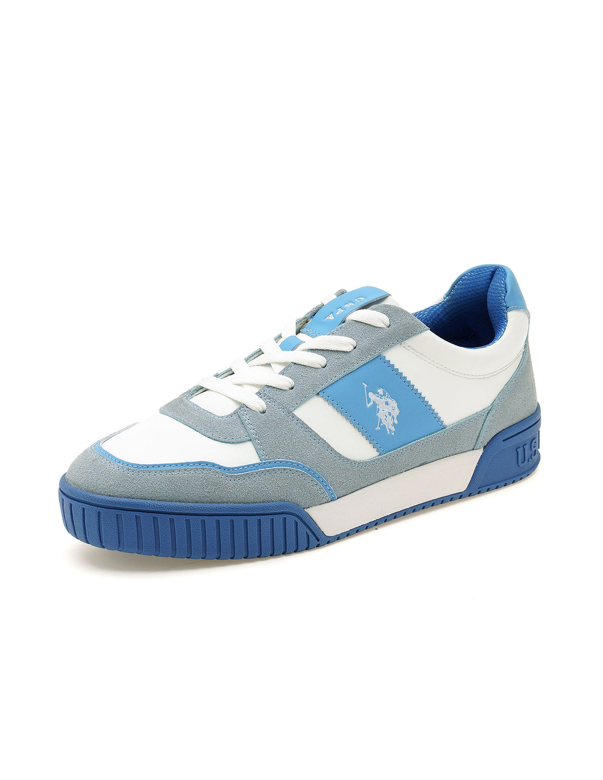 | Round toe | Central lacing | Panelled upper with logo | Padded top line | Reinforced heel counter | Cushioned insole | Textured outsole | Suede | Colorblocked pattern |