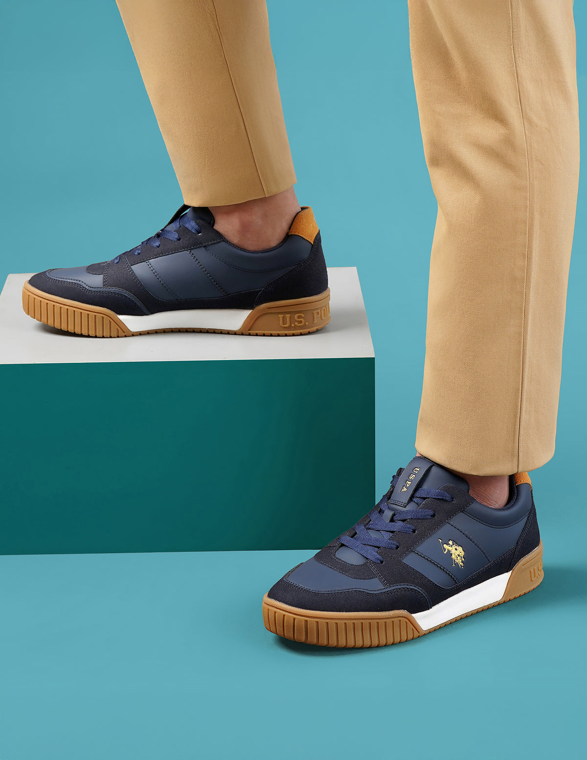 | Round toe | Central lacing | Panelled upper with logo | Padded top line | Reinforced heel counter | Cushioned insole | Textured outsole | Colorblocked pattern |