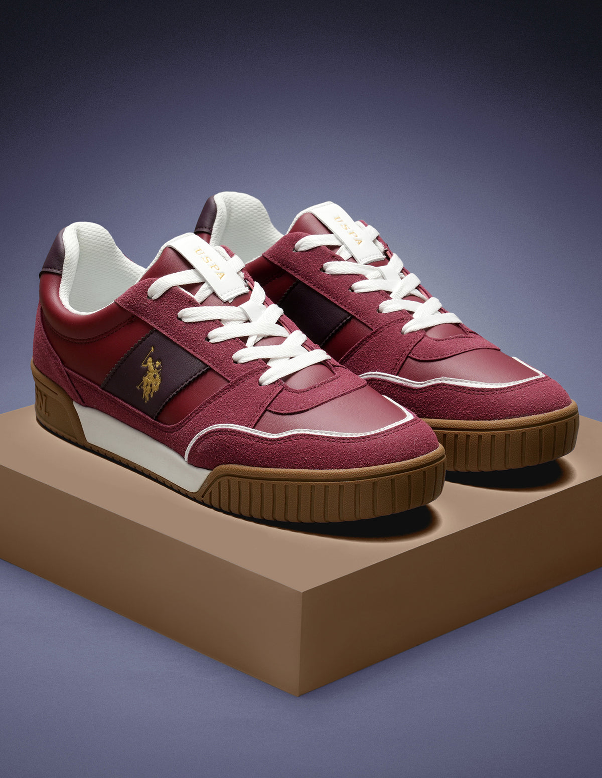 | Round toe | Central lacing | Panelled upper with logo | Padded top line | Reinforced heel counter | Cushioned insole | Textured outsole | Colourblocked pattern |