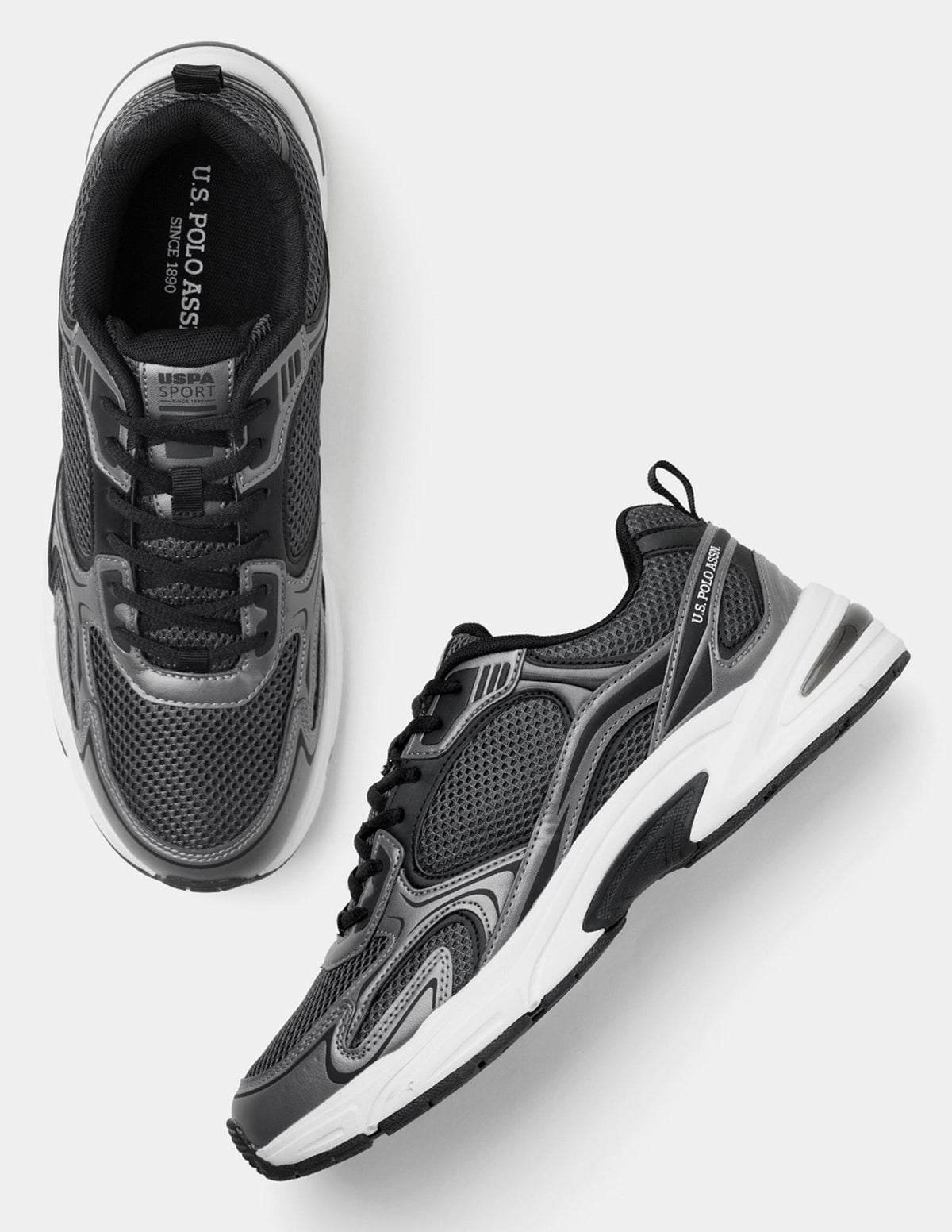 | Round toe | Central lacing | Panelled upper with logo | Padded top line | Reinforced heel counter | Cushioned insole | Textured outsole | Colourblocked pattern |